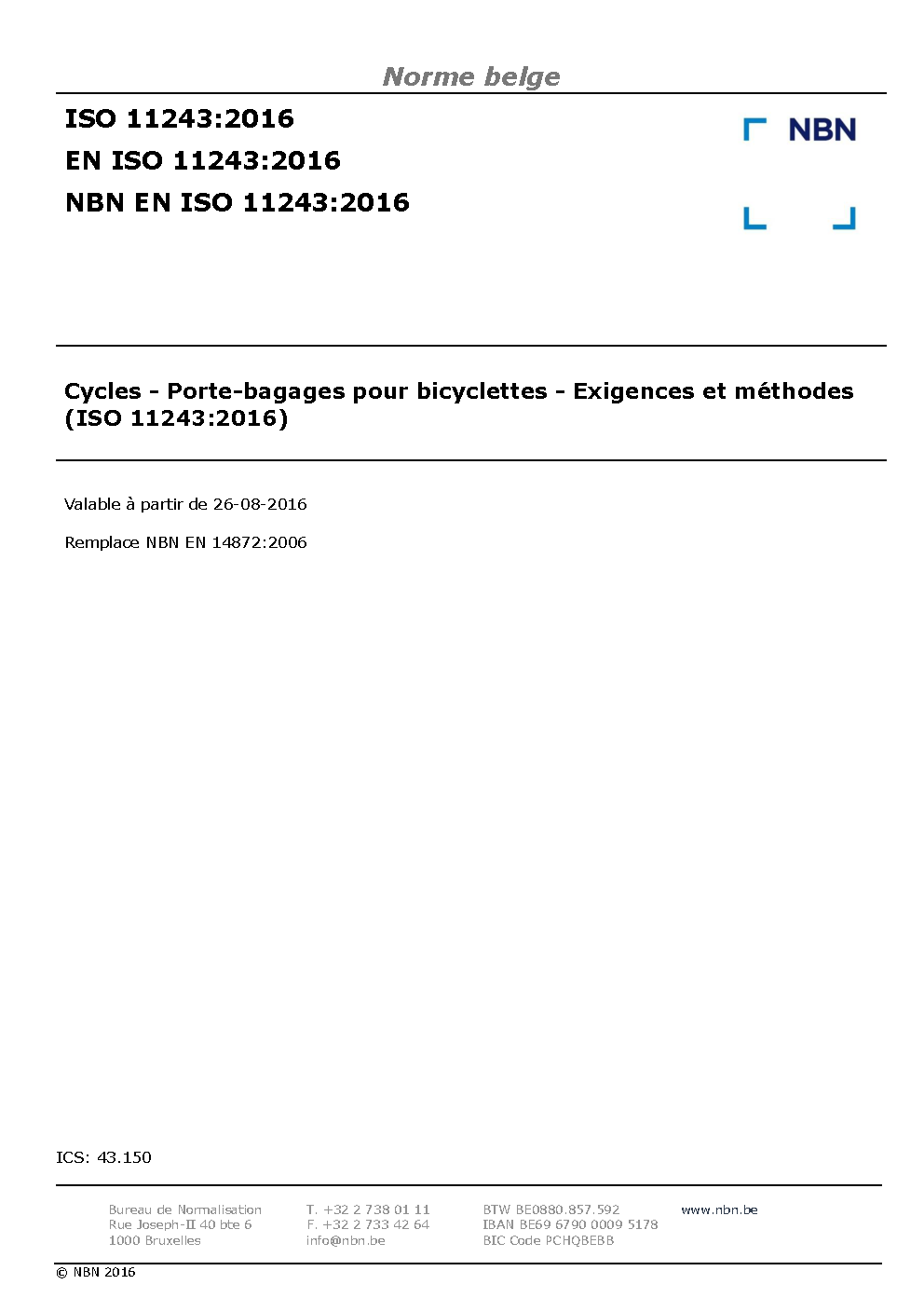 | Publisher | Bureau de Normalisation Belge (NBN) |