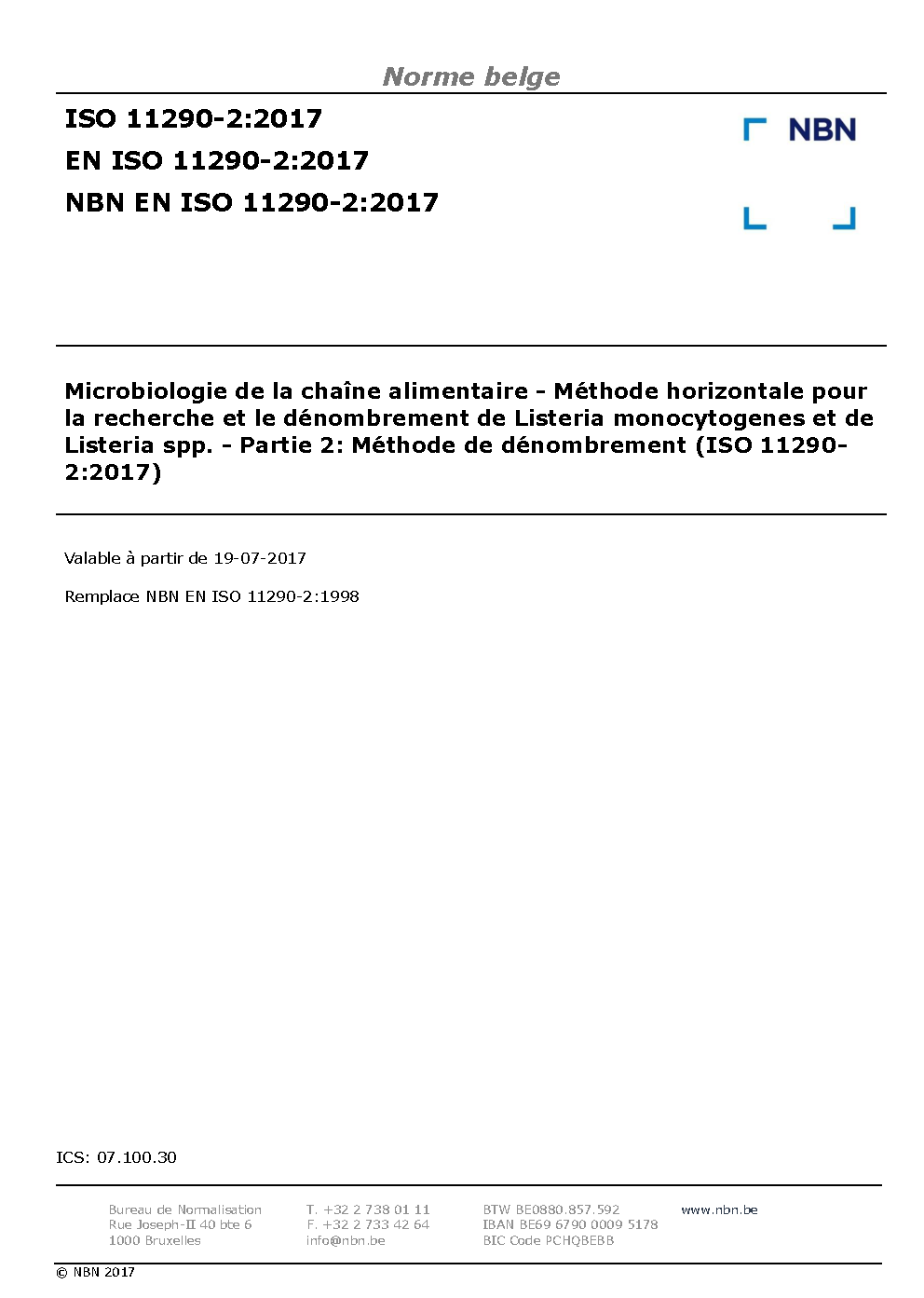 Microbiology of the food chain - Horizontal method for the detection and enumeration of Listeria monocytogenes and of Listeria spp. - Part 2: Enumeration method (ISO 11290-2:2017)