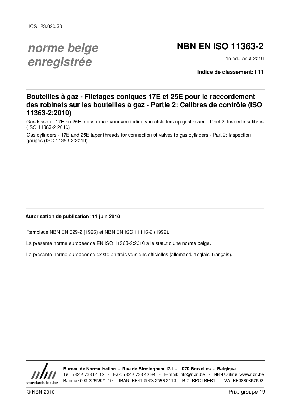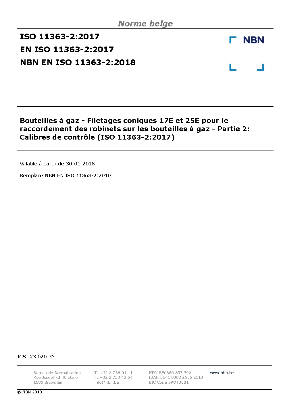 | Publisher | Bureau de Normalisation Belge (NBN) |
