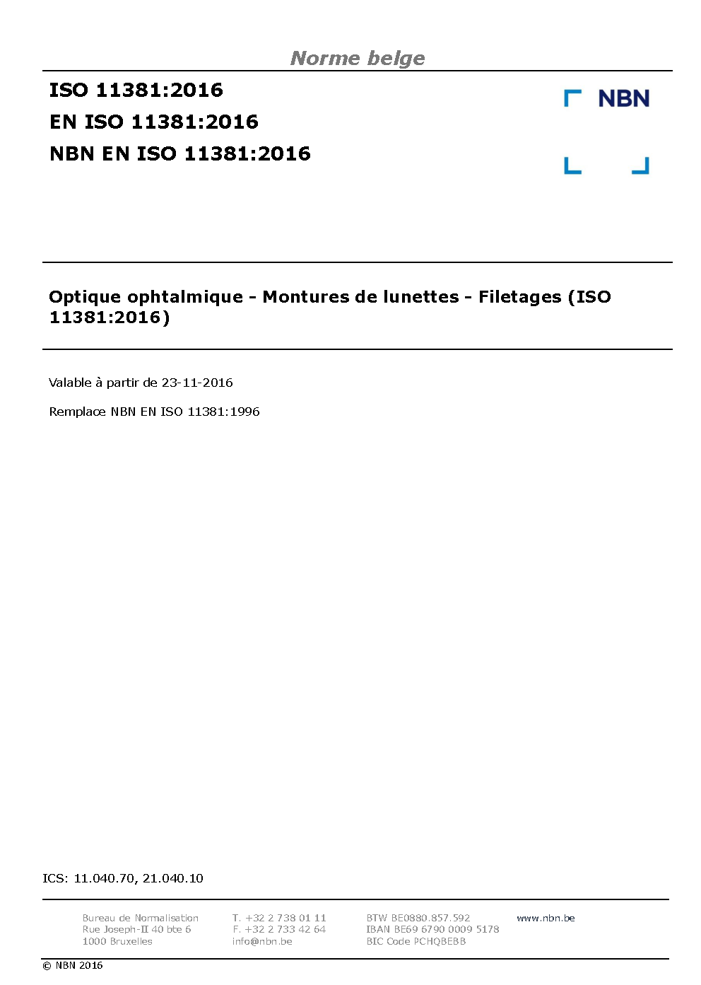 | Publisher | Bureau de Normalisation Belge (NBN) |