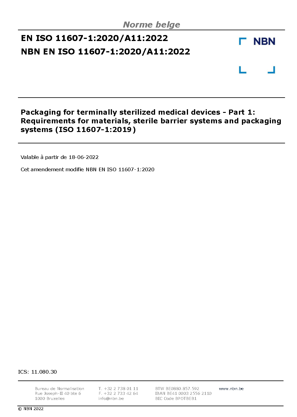 Packaging for terminally sterilized medical devices - Part 1: Requirements for materials, sterile barrier systems and packaging systems (ISO 11607-1:2019)