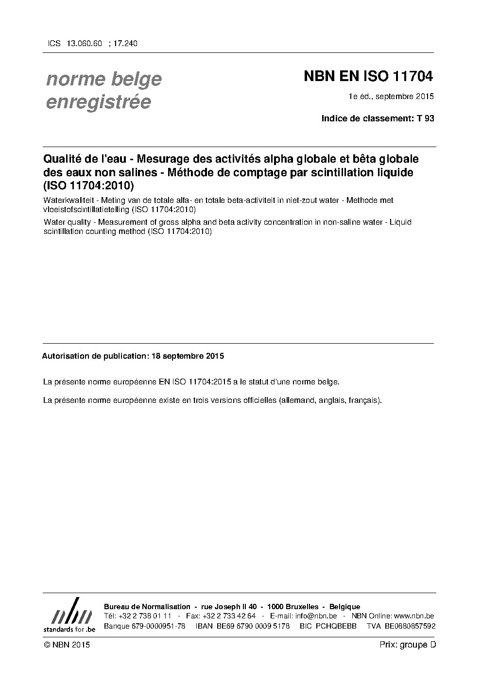 | Publisher | Bureau de Normalisation Belge (NBN) |