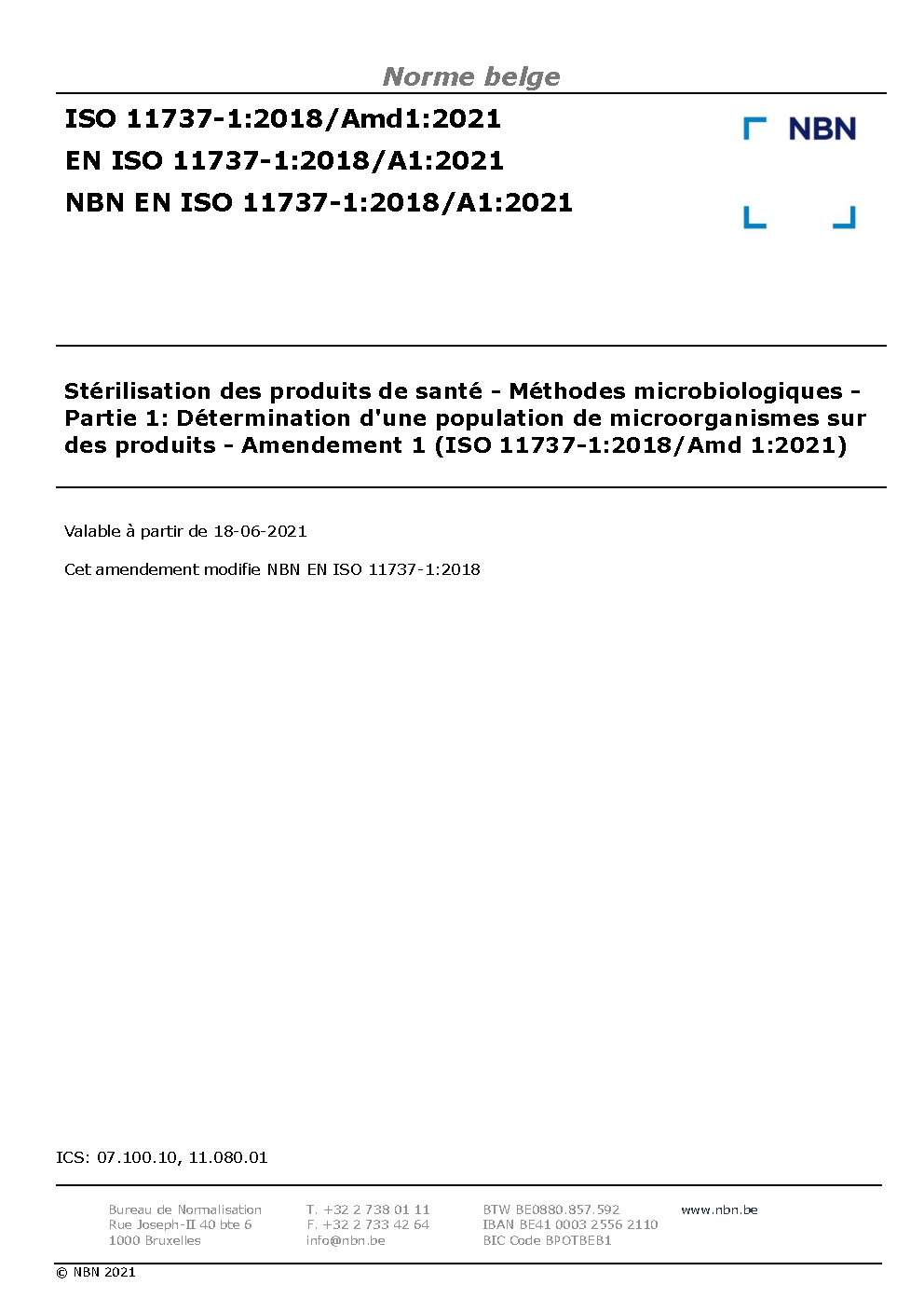 NBN EN ISO 11737-1:2018/A1:2021