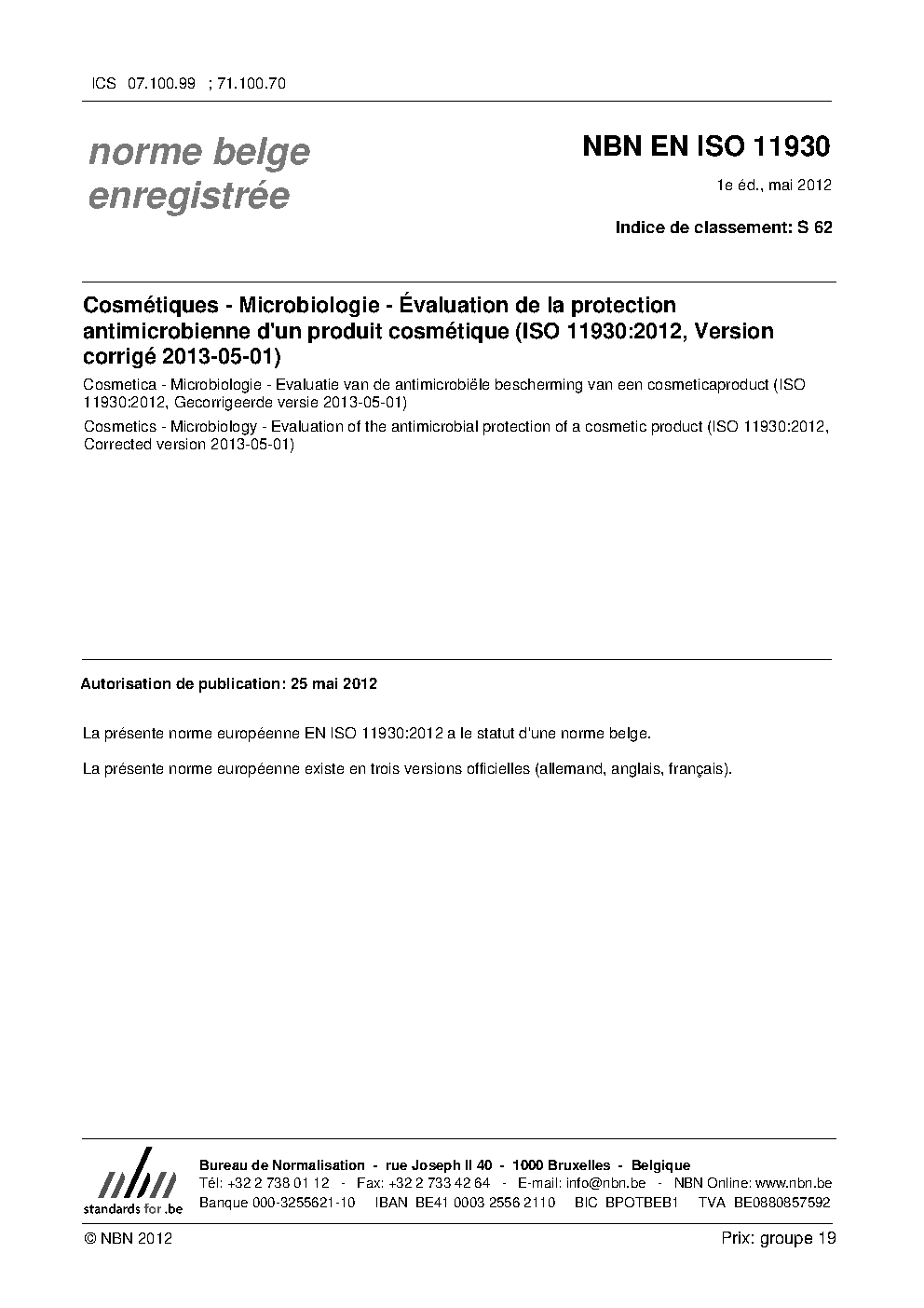 | Publisher | Bureau de Normalisation Belge (NBN) |