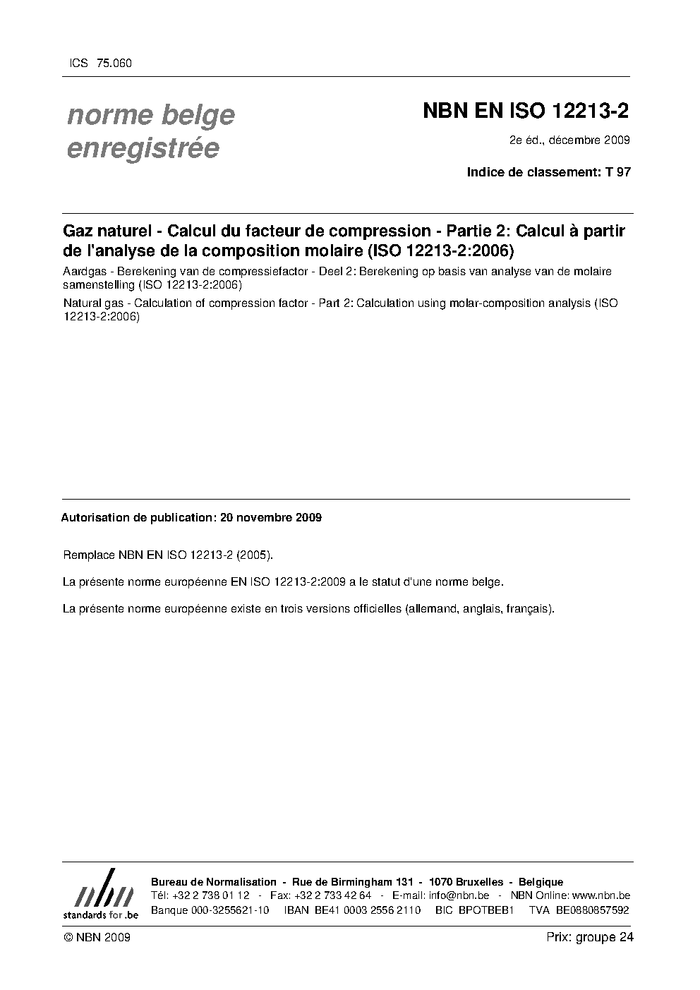 | Publisher | Bureau de Normalisation Belge (NBN) |