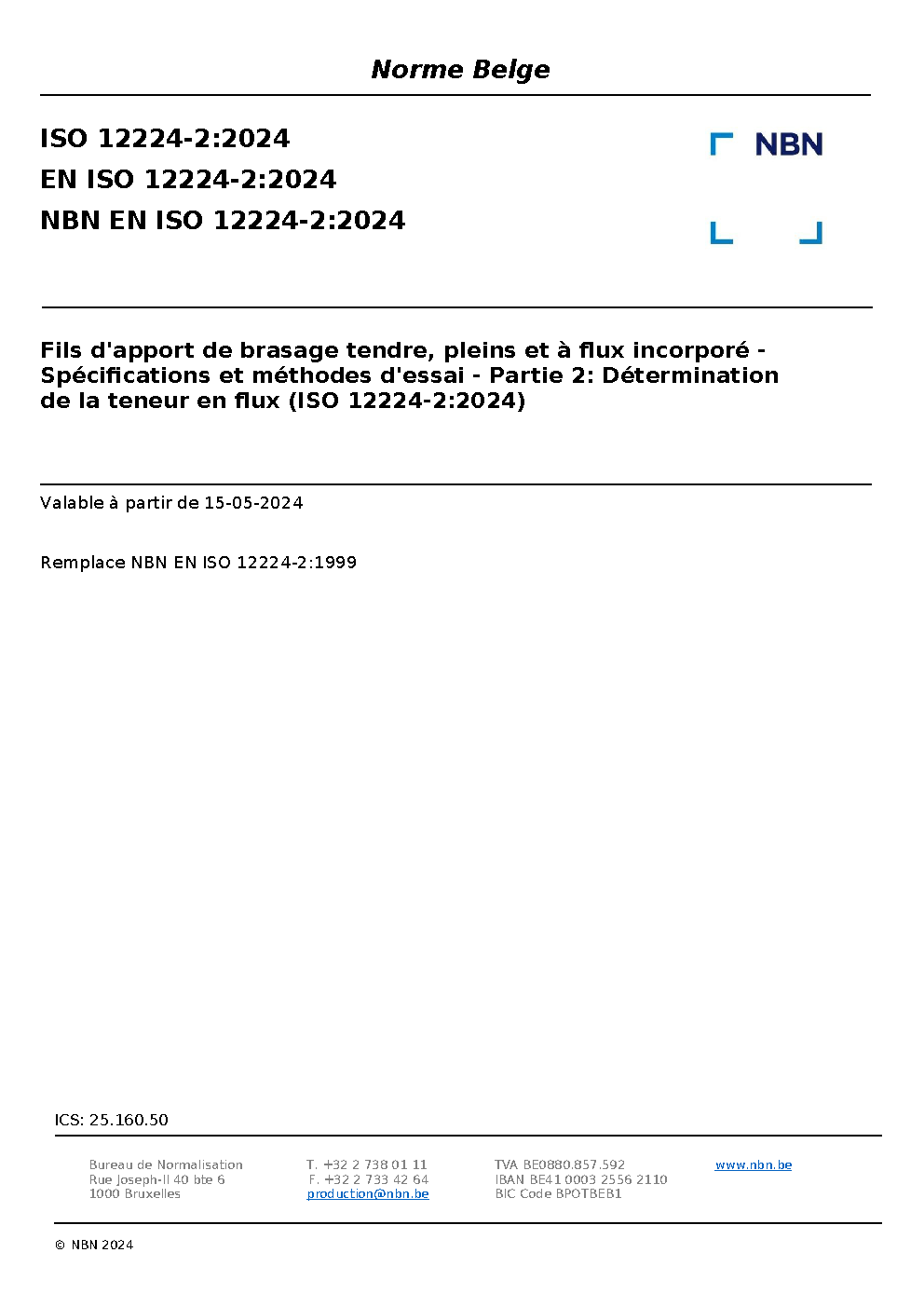 | Publisher | Bureau de Normalisation Belge (NBN) |