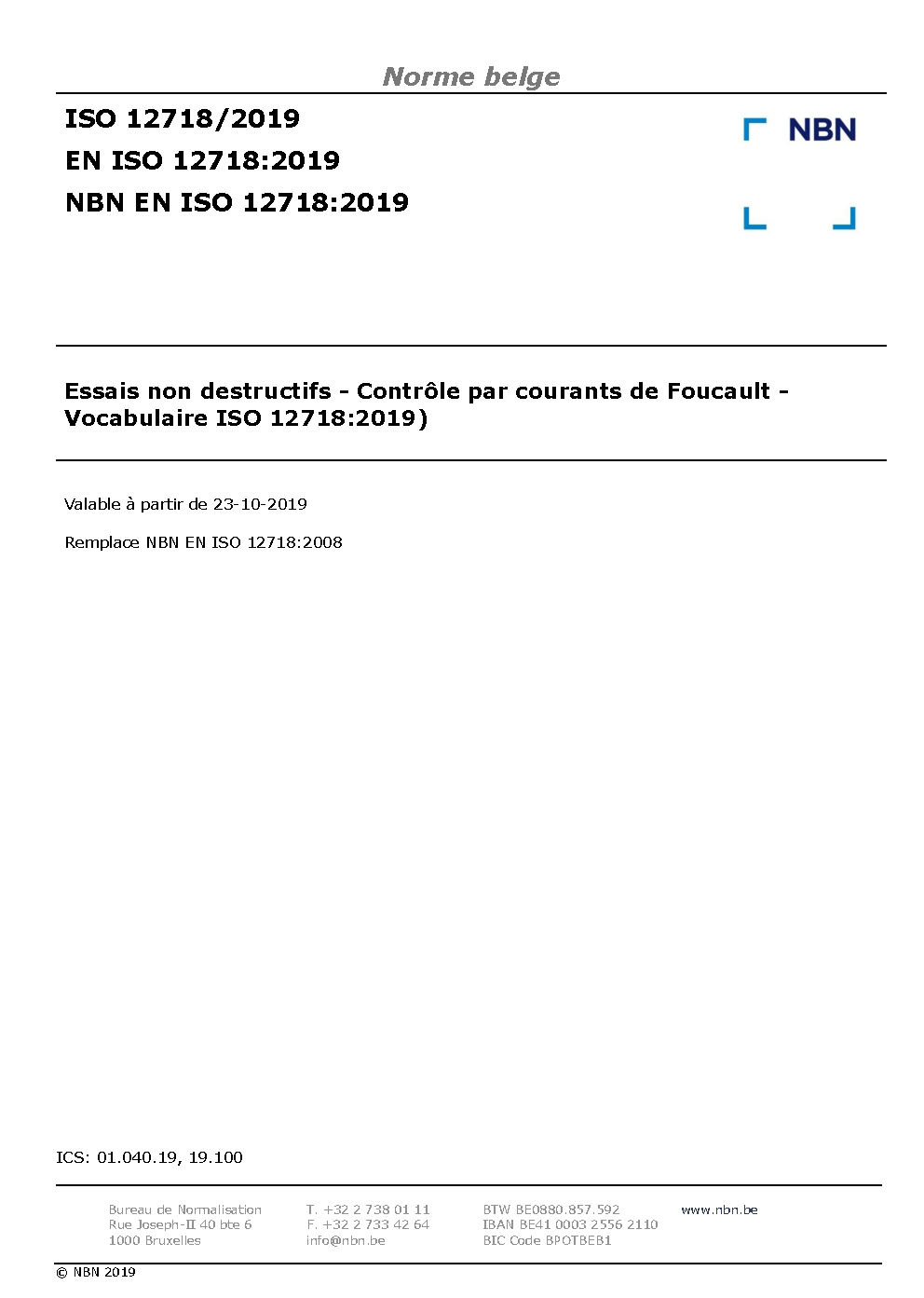 | Publisher | Bureau de Normalisation Belge (NBN) |