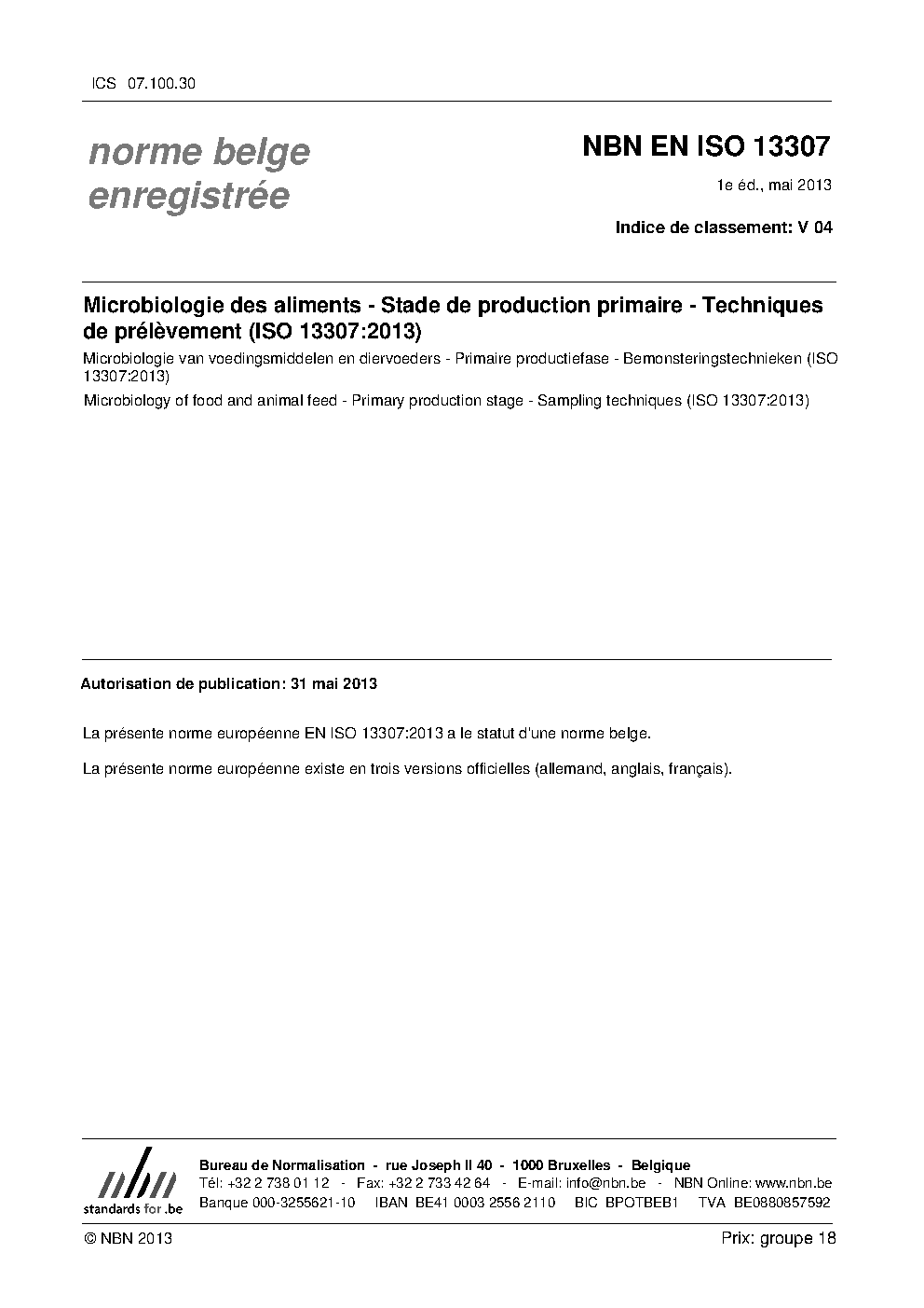 Microbiology of food and animal feed - Primary production stage - Sampling techniques (ISO 13307:2013)