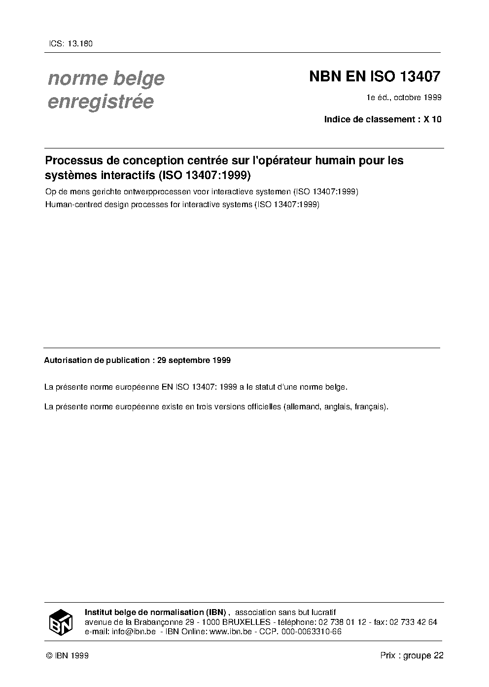 NBN EN ISO 13407:1999