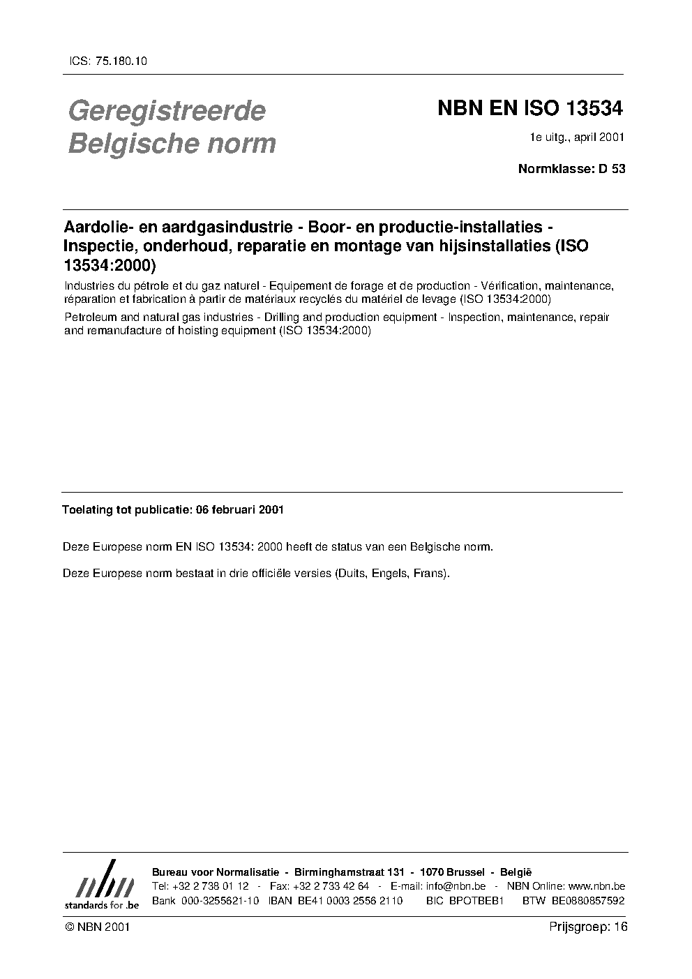 | Publisher | Bureau de Normalisation Belge (NBN) |