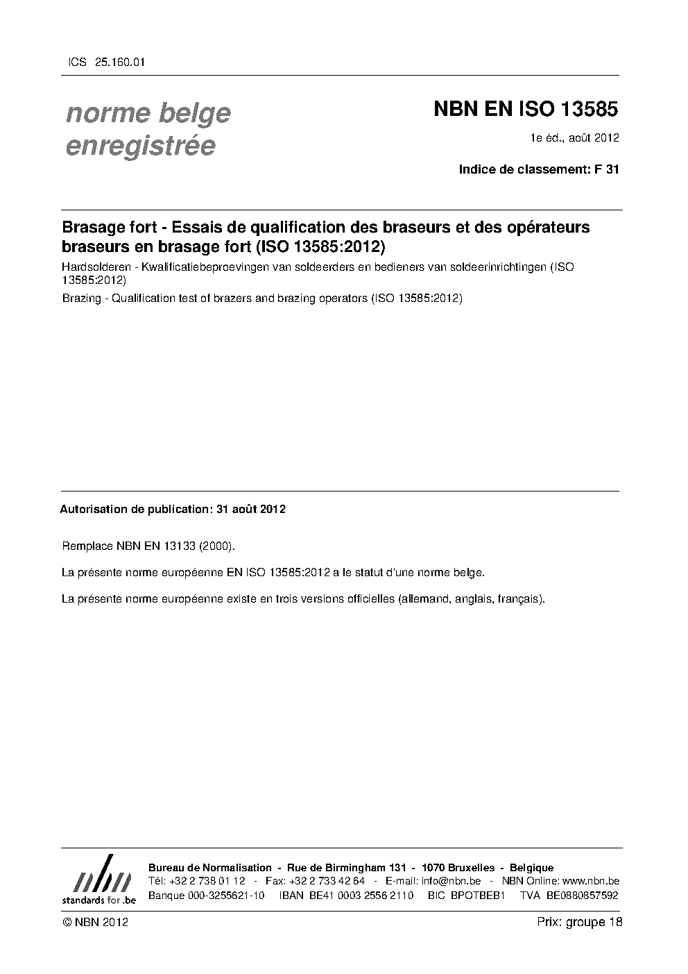 NBN EN ISO 13585:2012