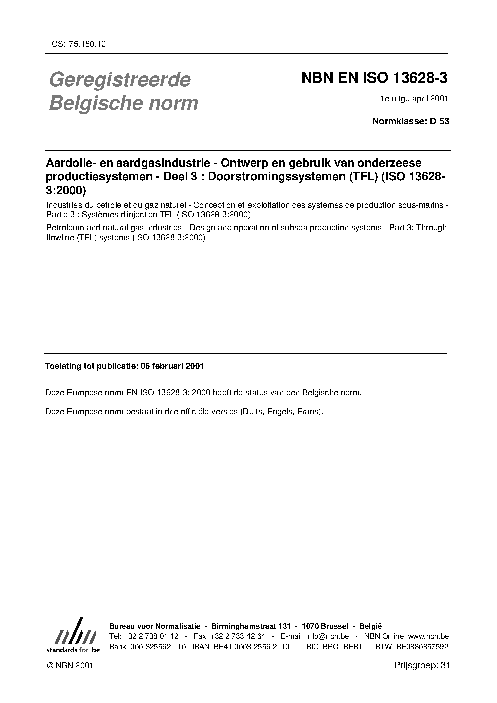 | Publisher | Bureau de Normalisation Belge (NBN) |