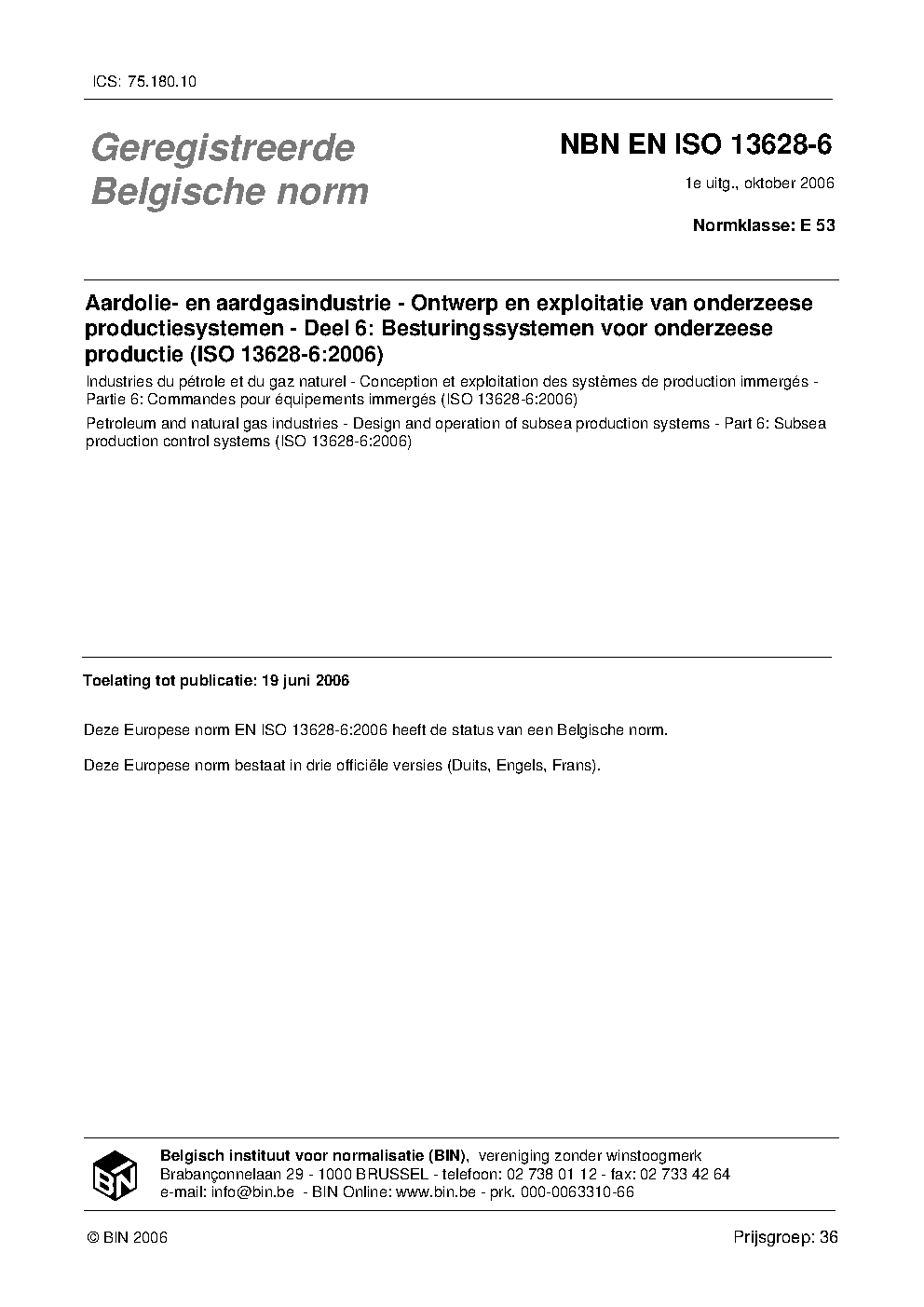 | Publisher | Bureau de Normalisation Belge (NBN) |