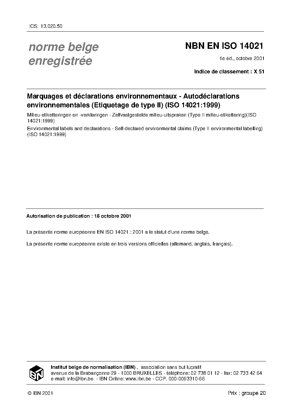 | Publisher | Bureau de Normalisation Belge (NBN) |