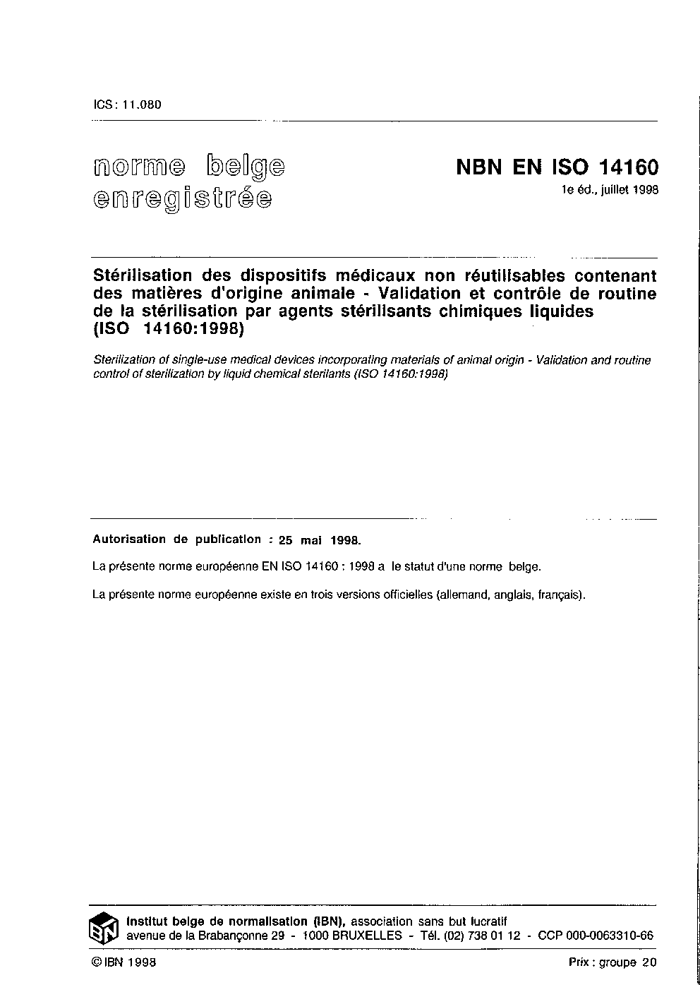 | Publisher | Bureau de Normalisation Belge (NBN) |