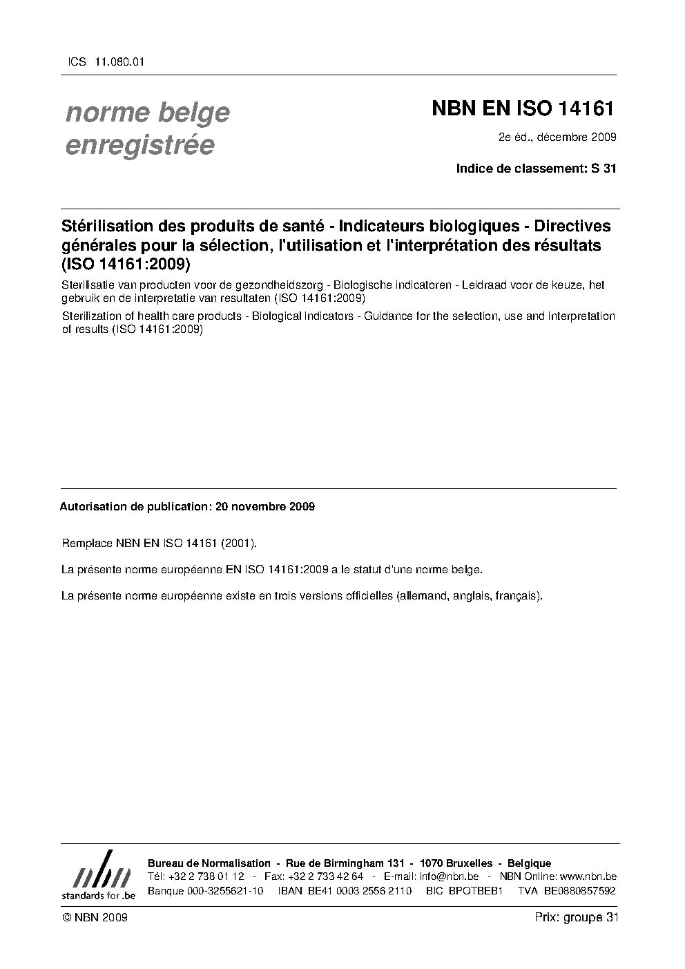 | Publisher | Bureau de Normalisation Belge (NBN) |