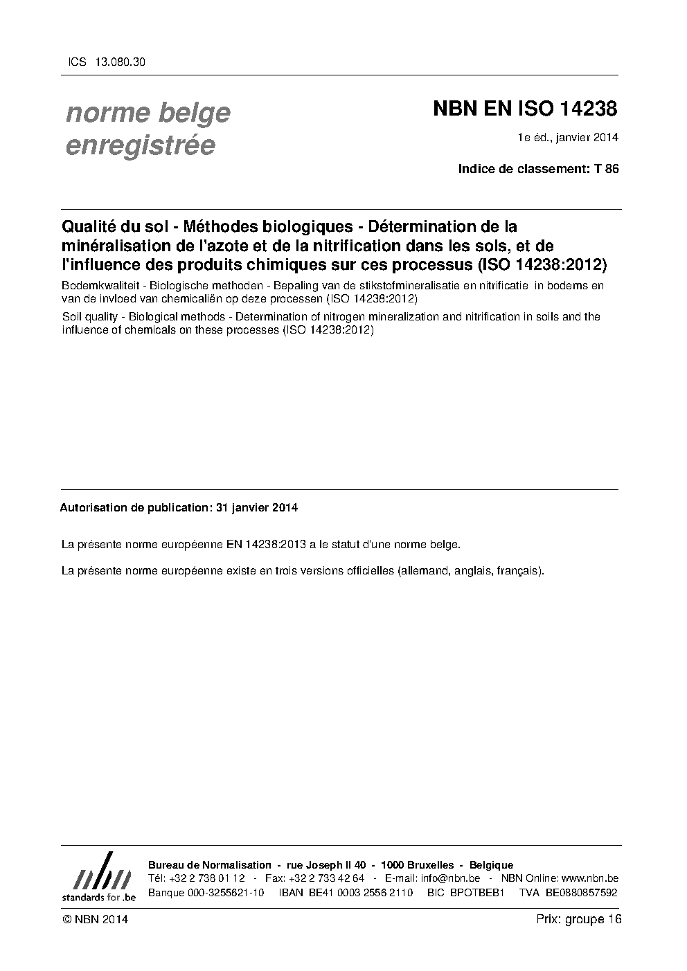 | Publisher | Bureau de Normalisation Belge (NBN) |