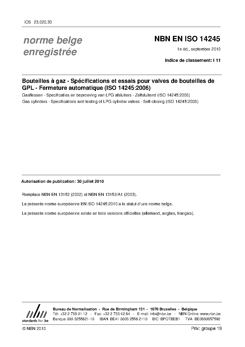 | Publisher | Bureau de Normalisation Belge (NBN) |