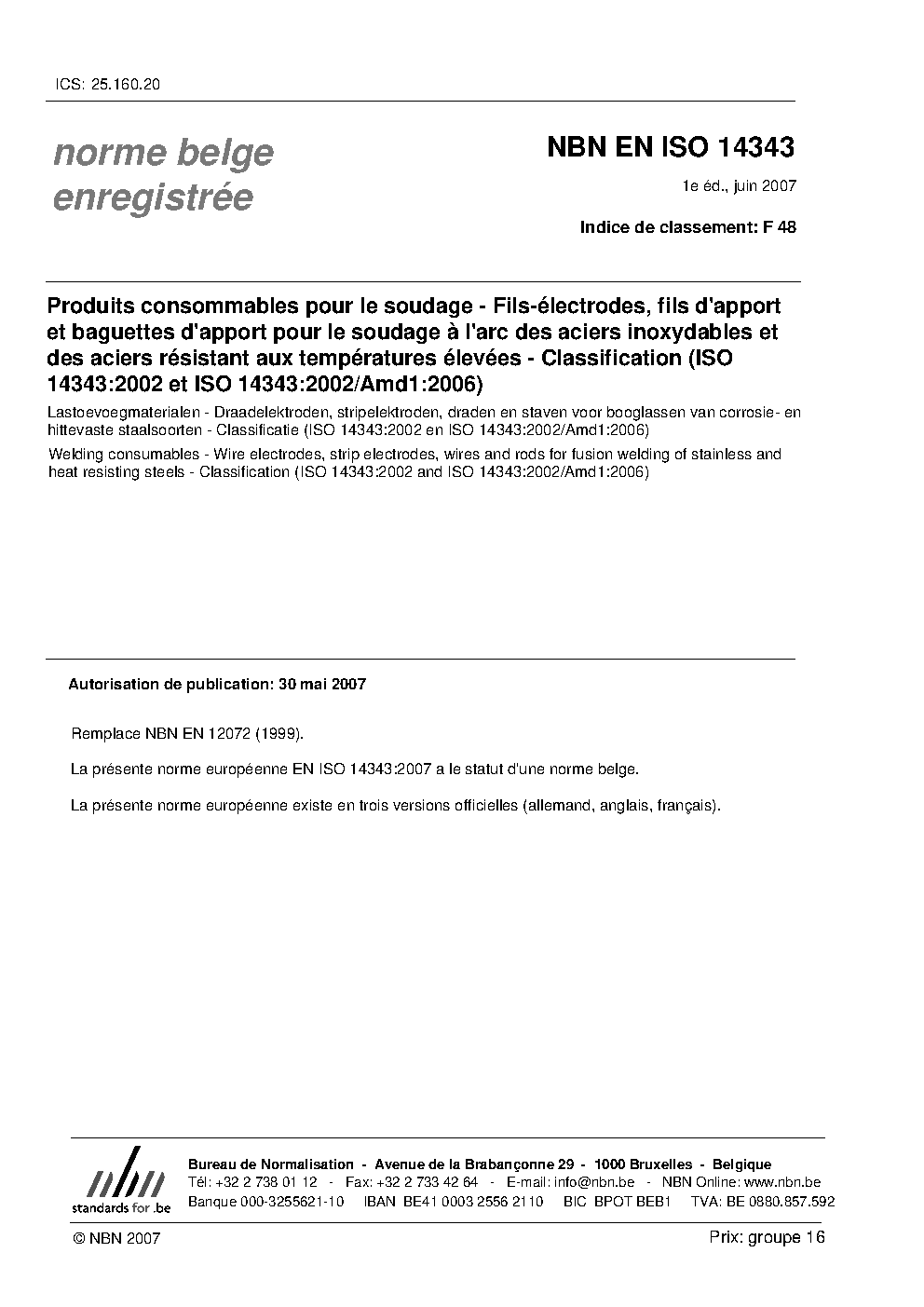NBN EN ISO 14343:2007