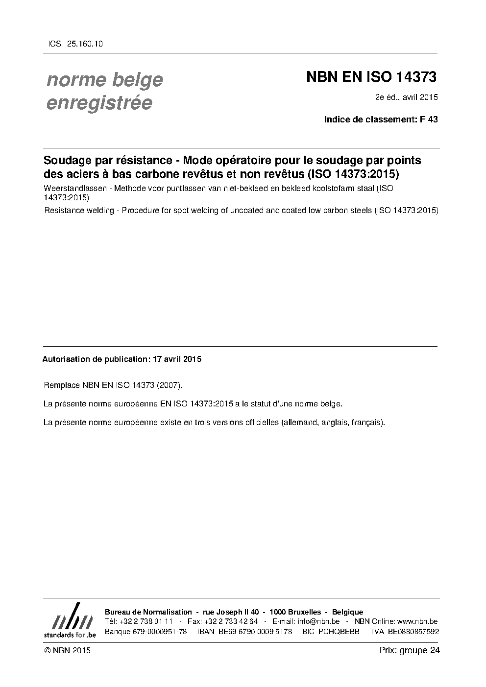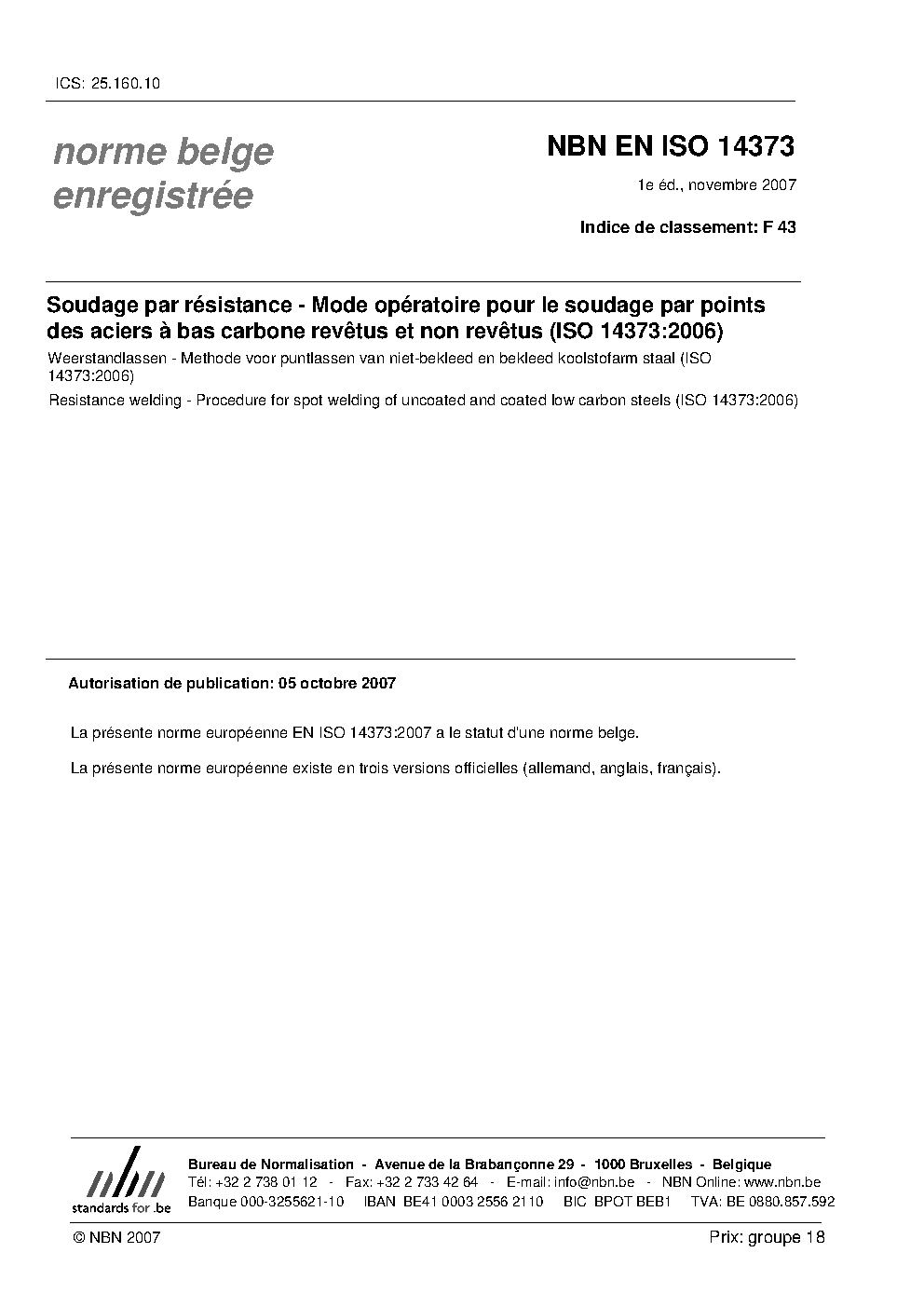 | Publisher | Bureau de Normalisation Belge (NBN) |