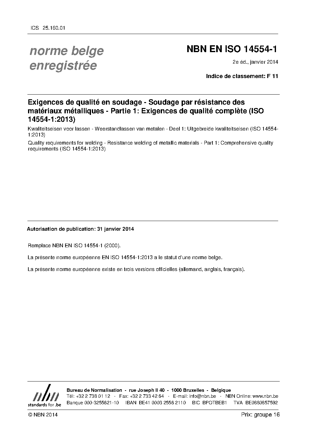 NBN EN ISO 14554-1:2014