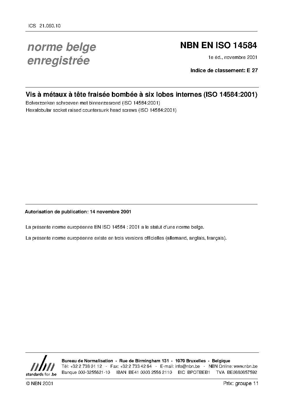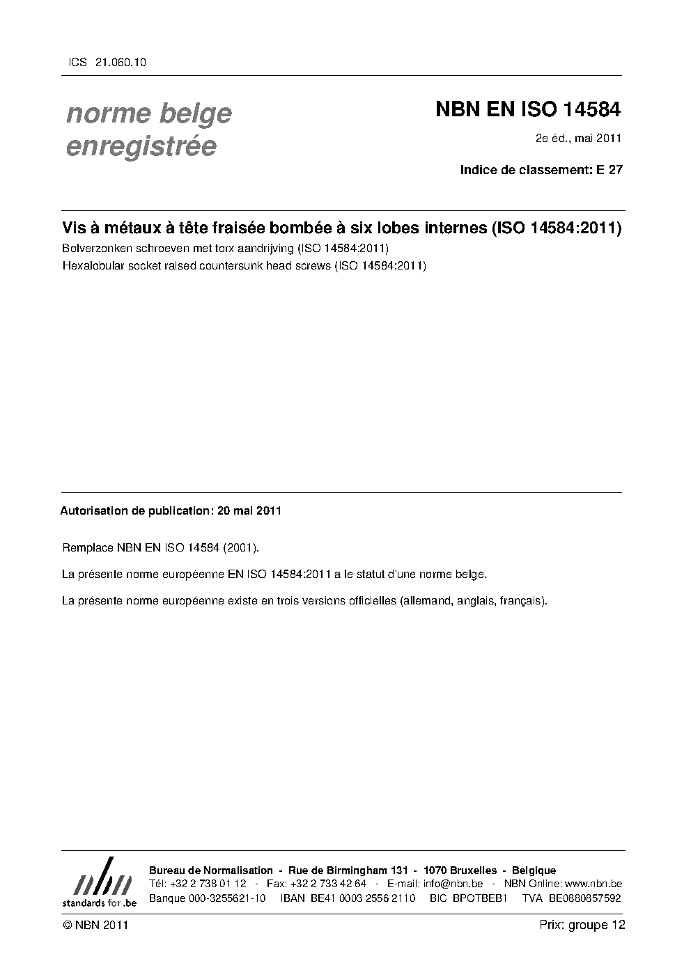 | Publisher | Bureau de Normalisation Belge (NBN) |