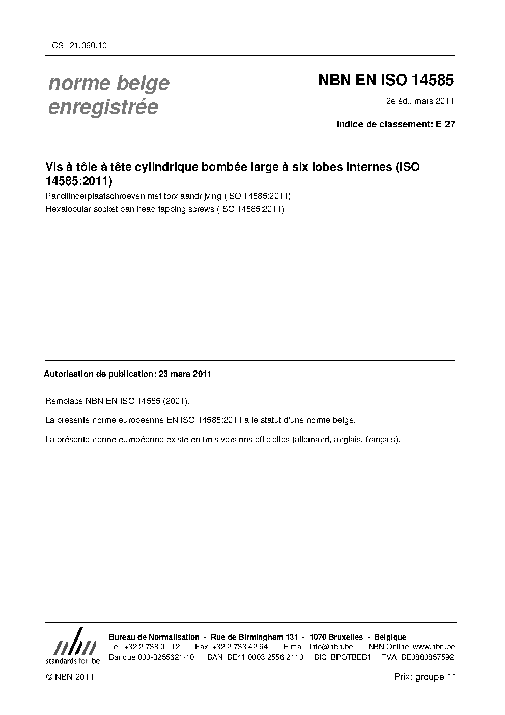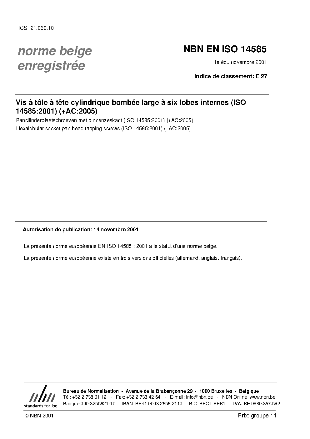 | Publisher | Bureau de Normalisation Belge (NBN) |