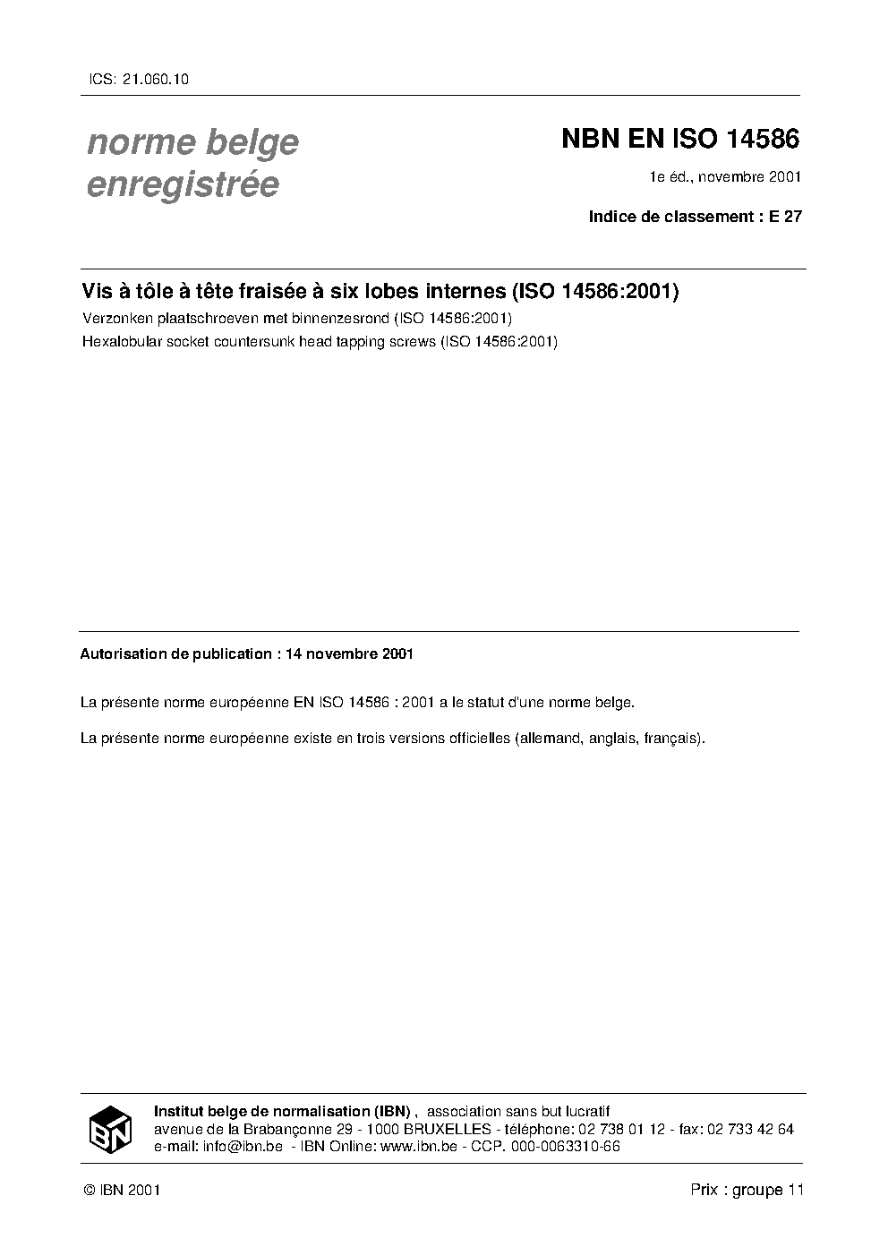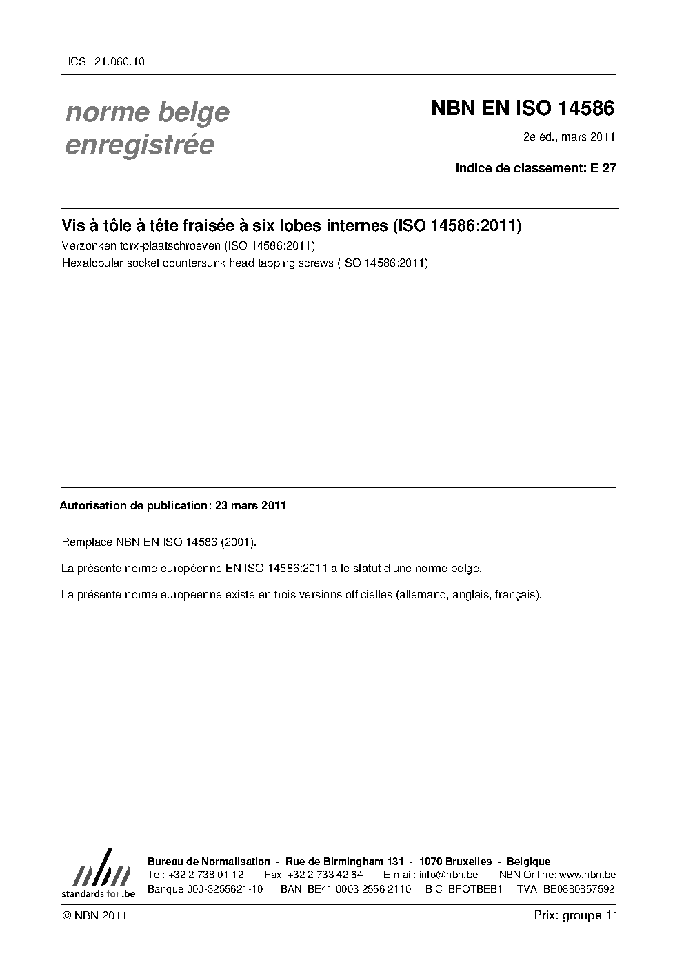 | Publisher | Bureau de Normalisation Belge (NBN) |
