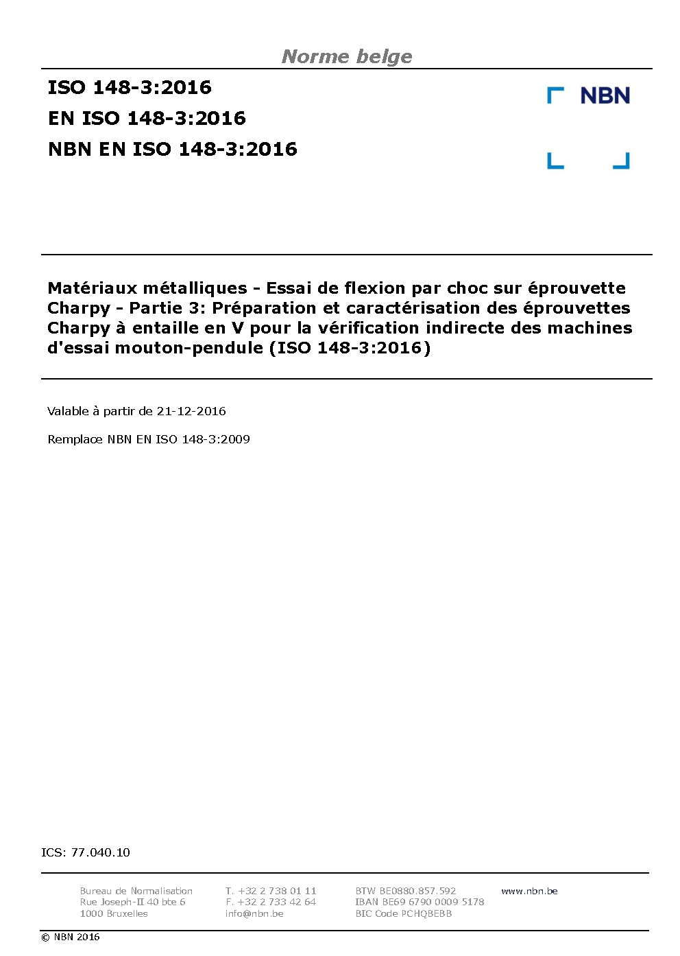 NBN EN ISO 148-3:2016