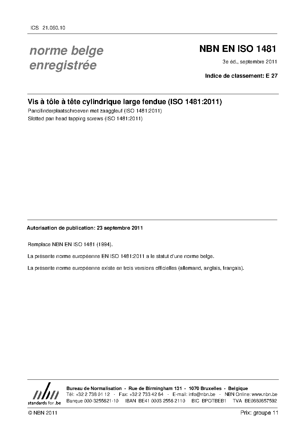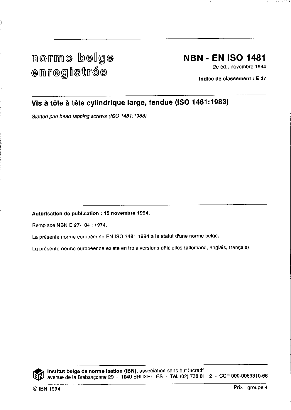 | Publisher | Bureau de Normalisation Belge (NBN) |