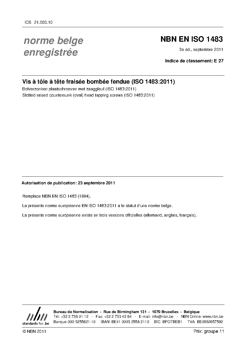| Publisher | Bureau de Normalisation Belge (NBN) |