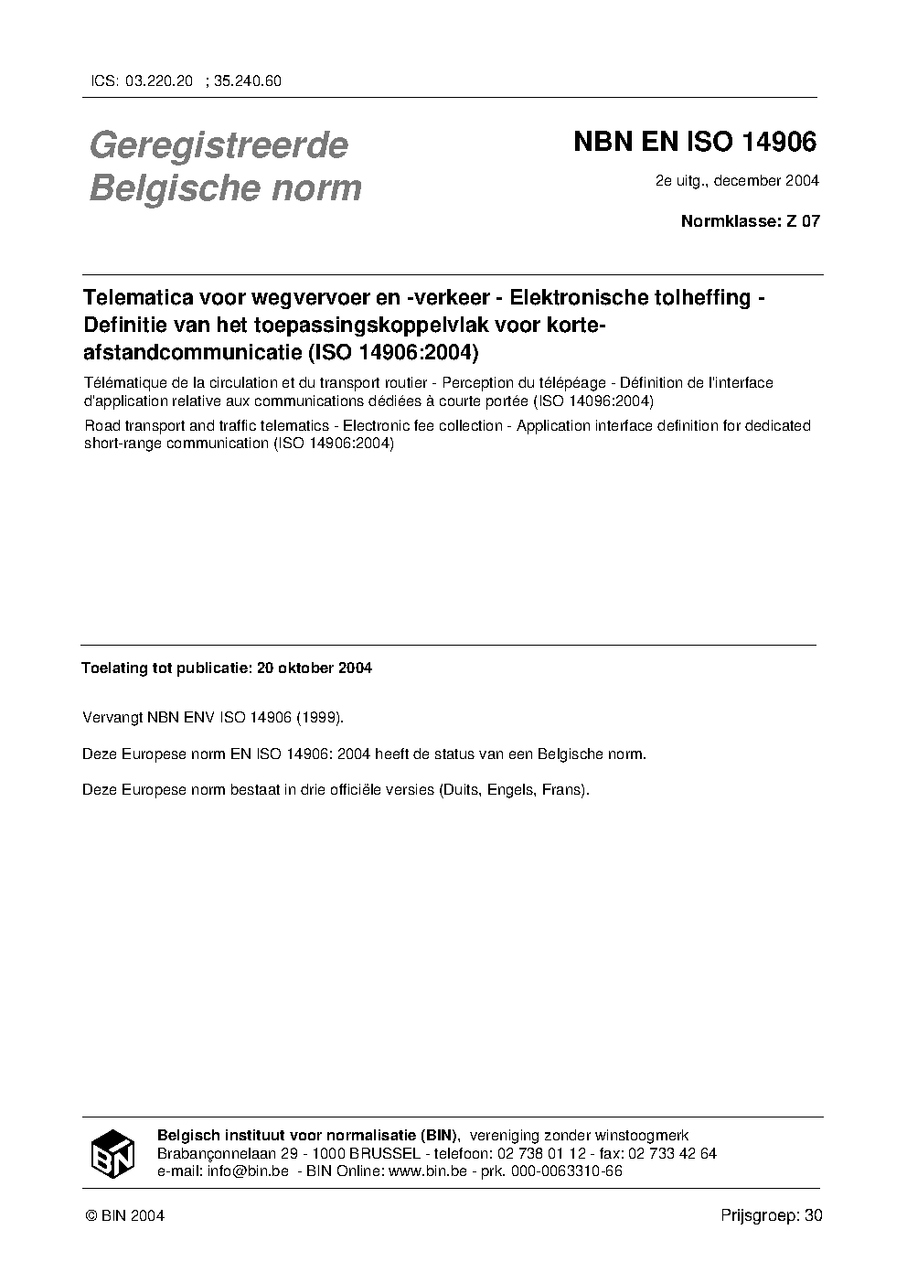| Publisher | Bureau de Normalisation Belge (NBN) |