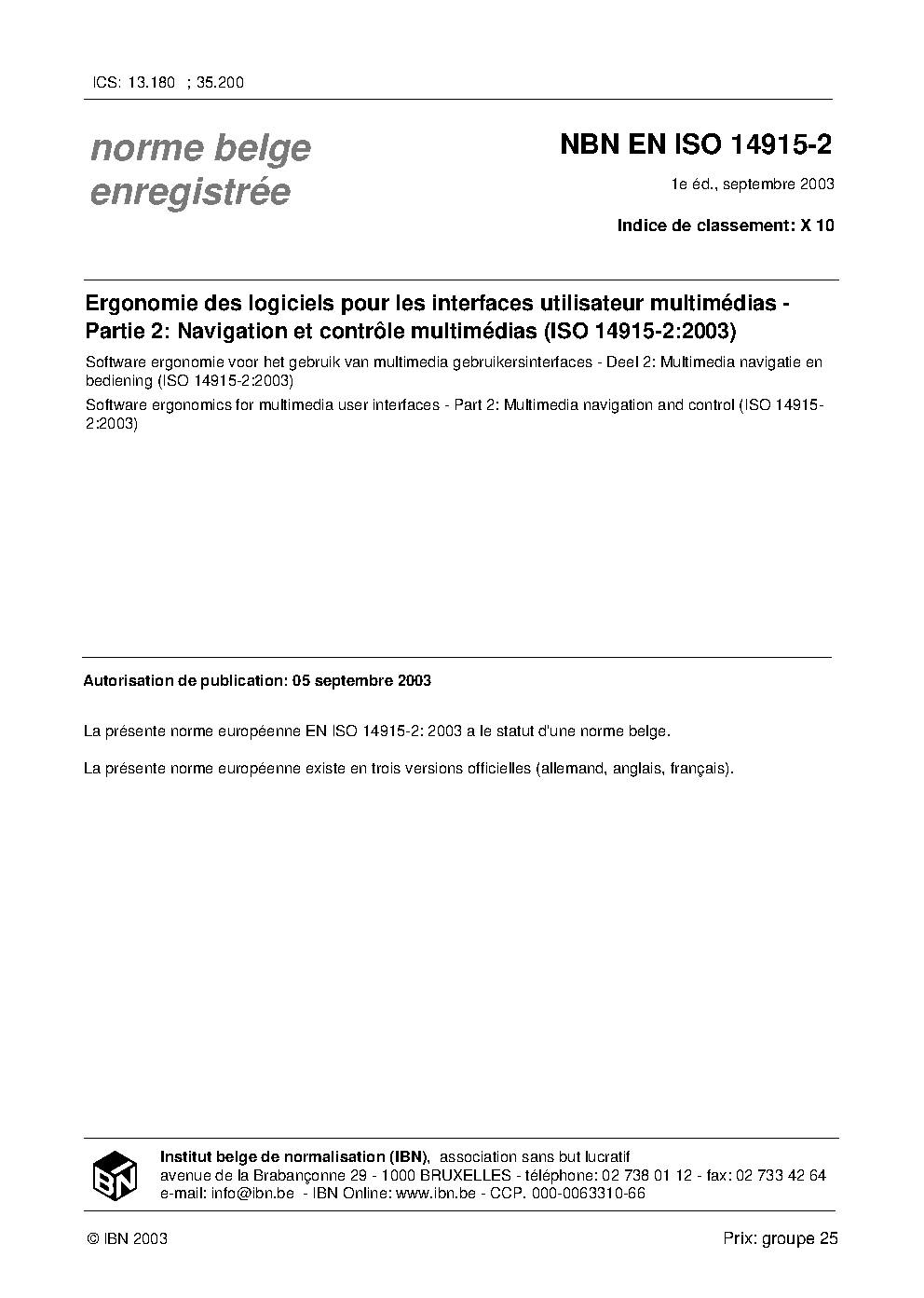 | Publisher | Bureau de Normalisation Belge (NBN) |