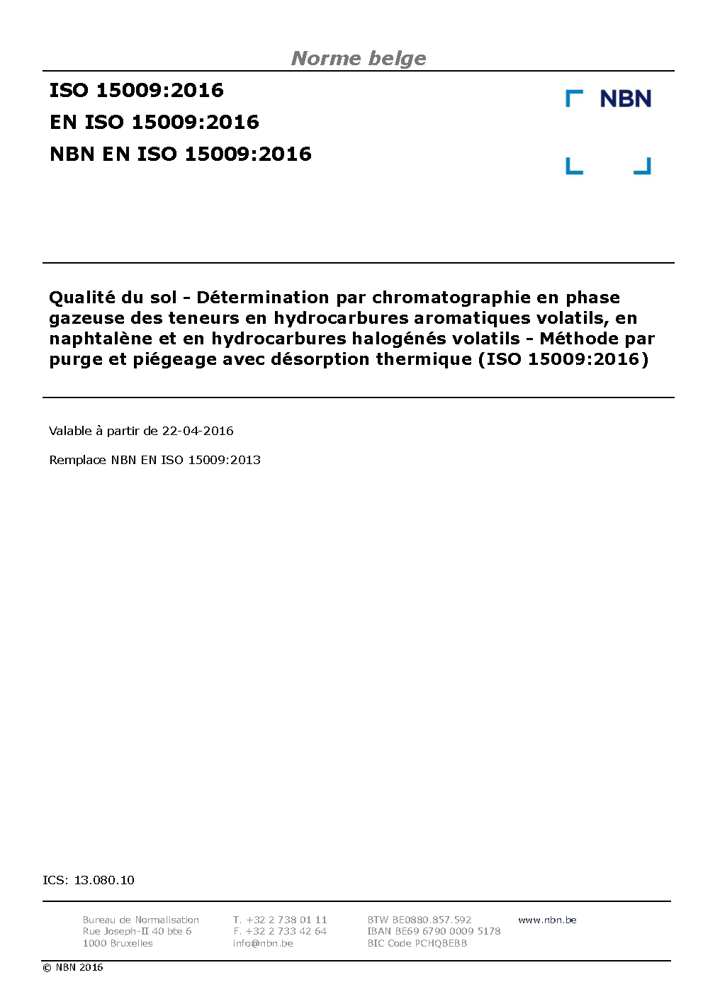 | Publisher | Bureau de Normalisation Belge (NBN) |