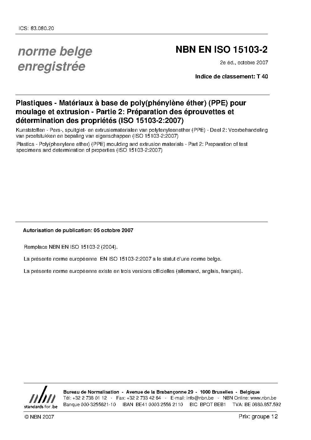 | Publisher | Bureau de Normalisation Belge (NBN) |