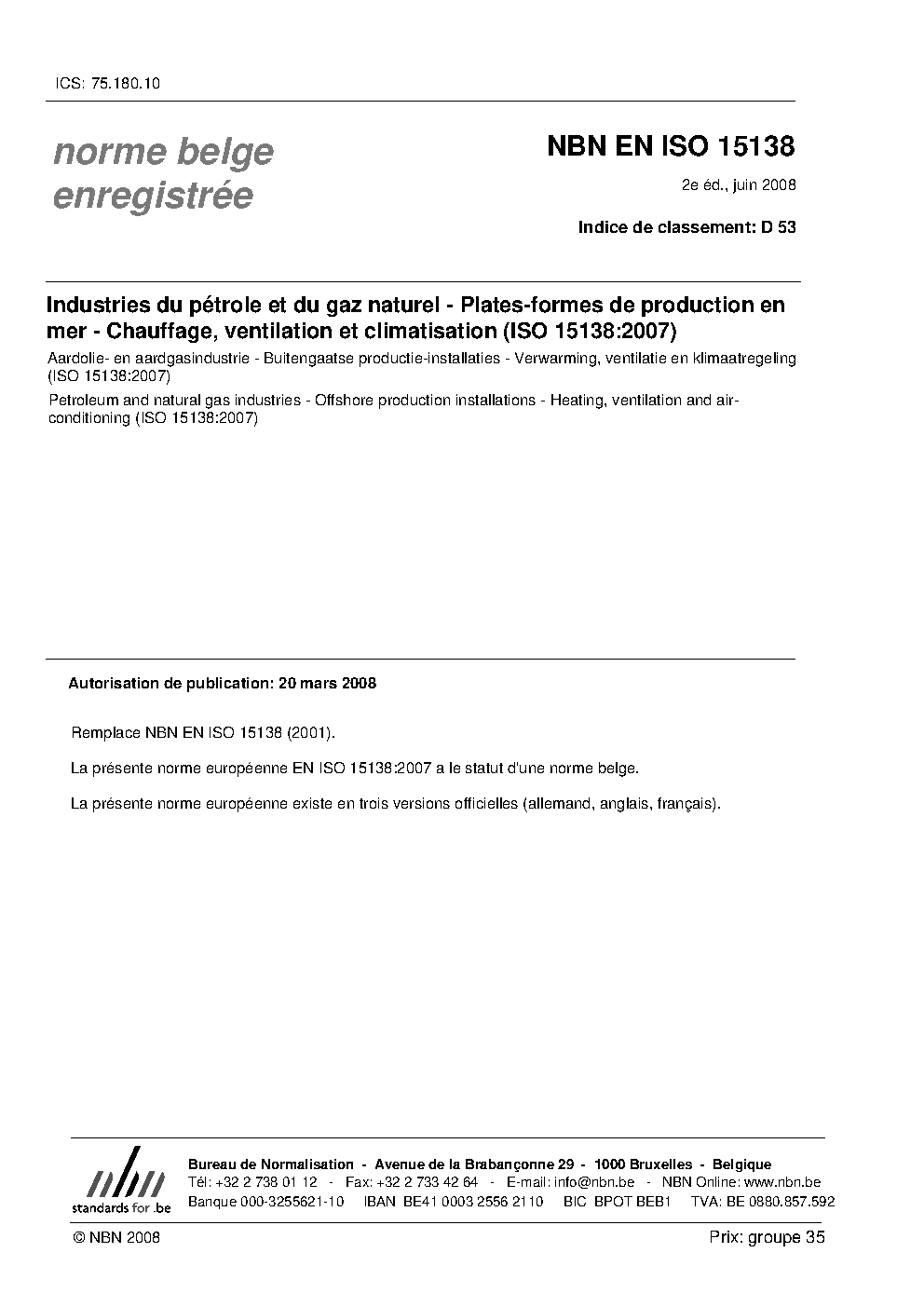 | Publisher | Bureau de Normalisation Belge (NBN) |