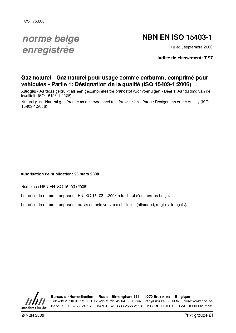 | Publisher | Bureau de Normalisation Belge (NBN) |