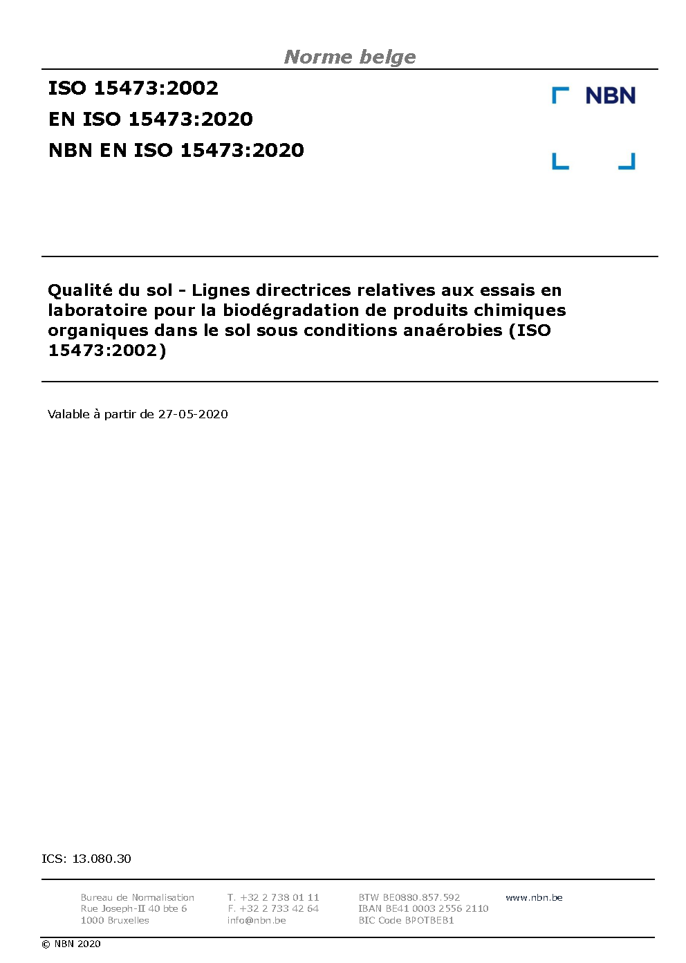 | Publisher | Bureau de Normalisation Belge (NBN) |