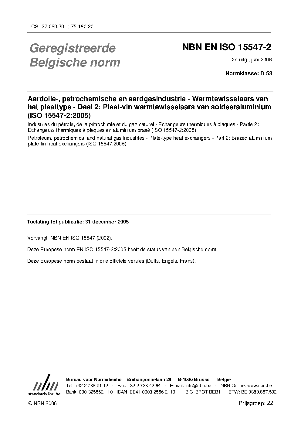 | Publisher | Bureau de Normalisation Belge (NBN) |