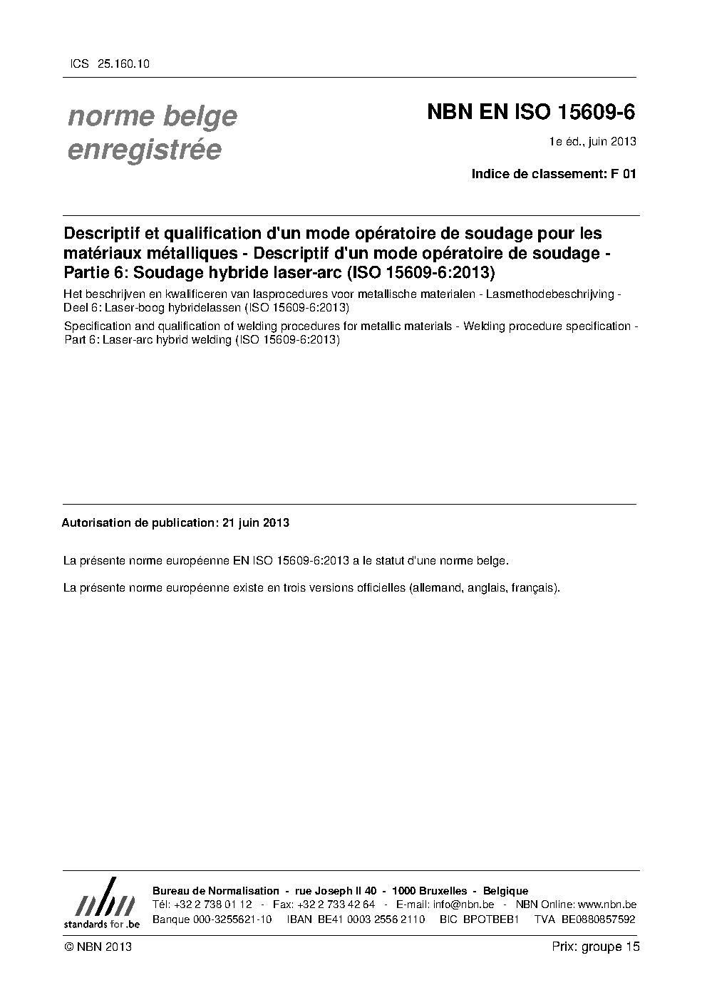 NBN EN ISO 15609-6:2013