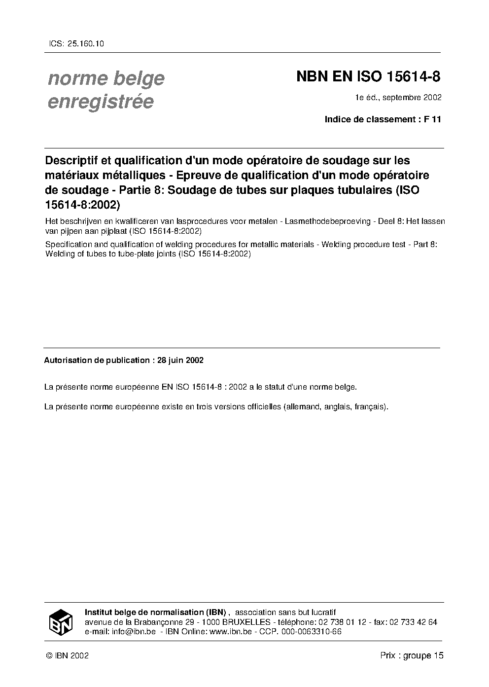 NBN EN ISO 15614-8:2002