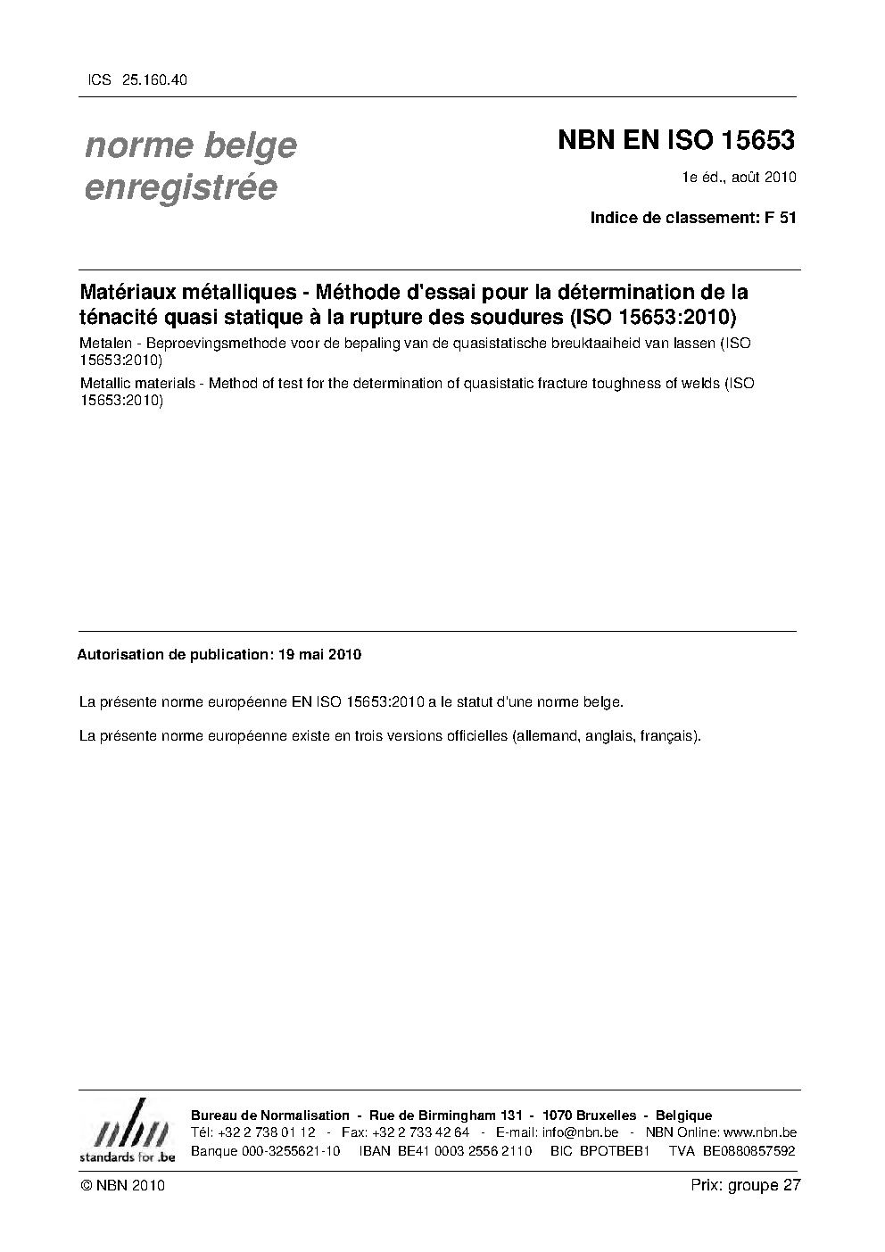| Publisher | Bureau de Normalisation Belge (NBN) |