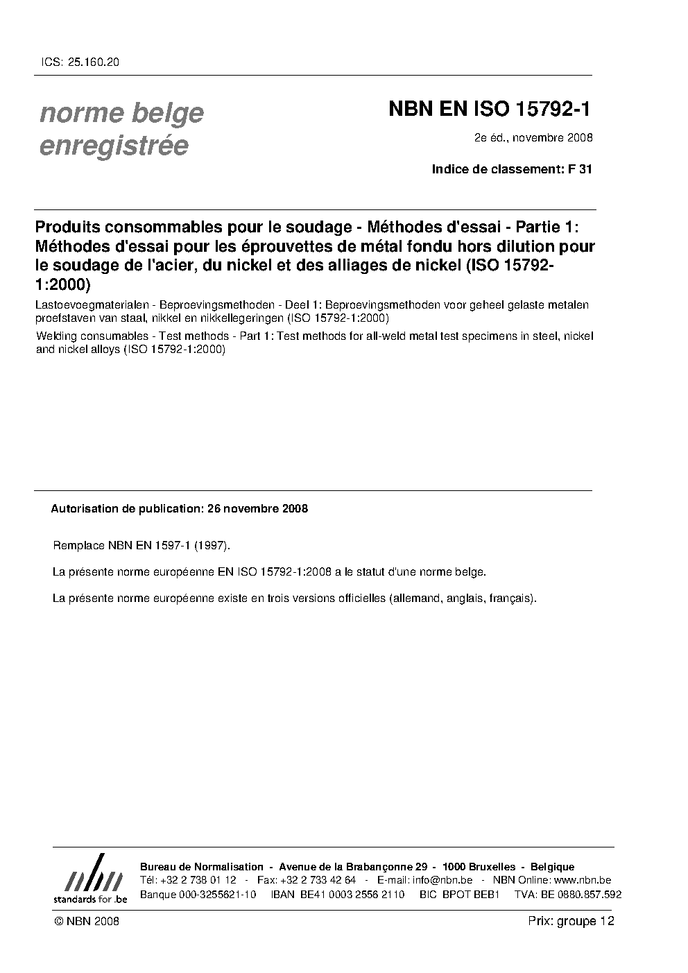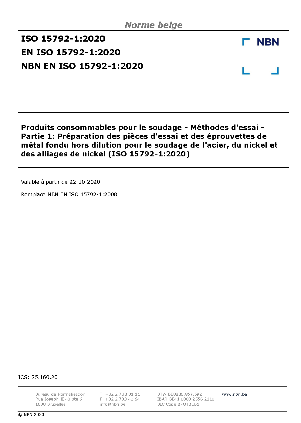 | Publisher | Bureau de Normalisation Belge (NBN) |