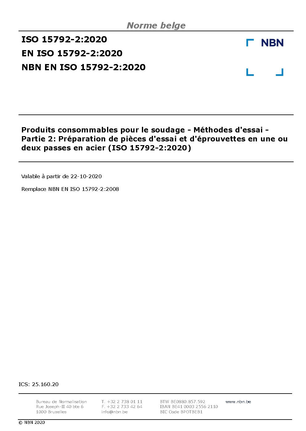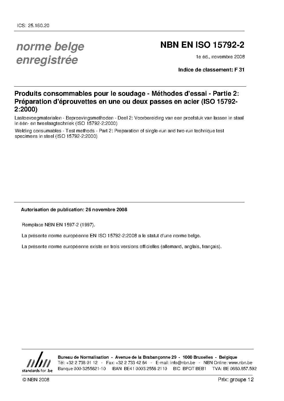 | Publisher | Bureau de Normalisation Belge (NBN) |