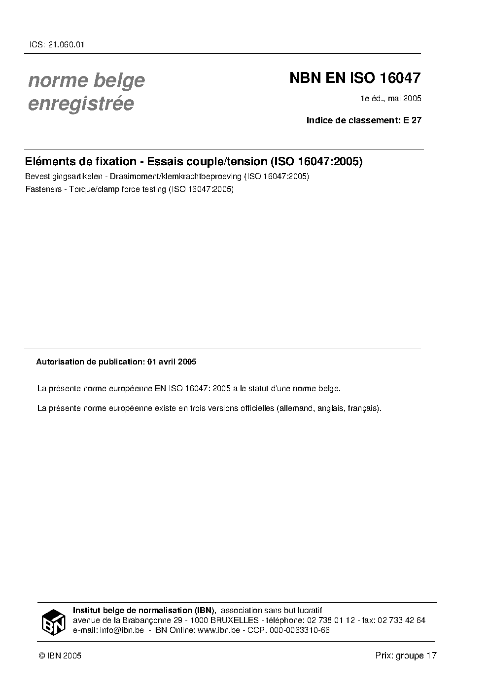 Publisher Bureau de Normalisation Belge (NBN)