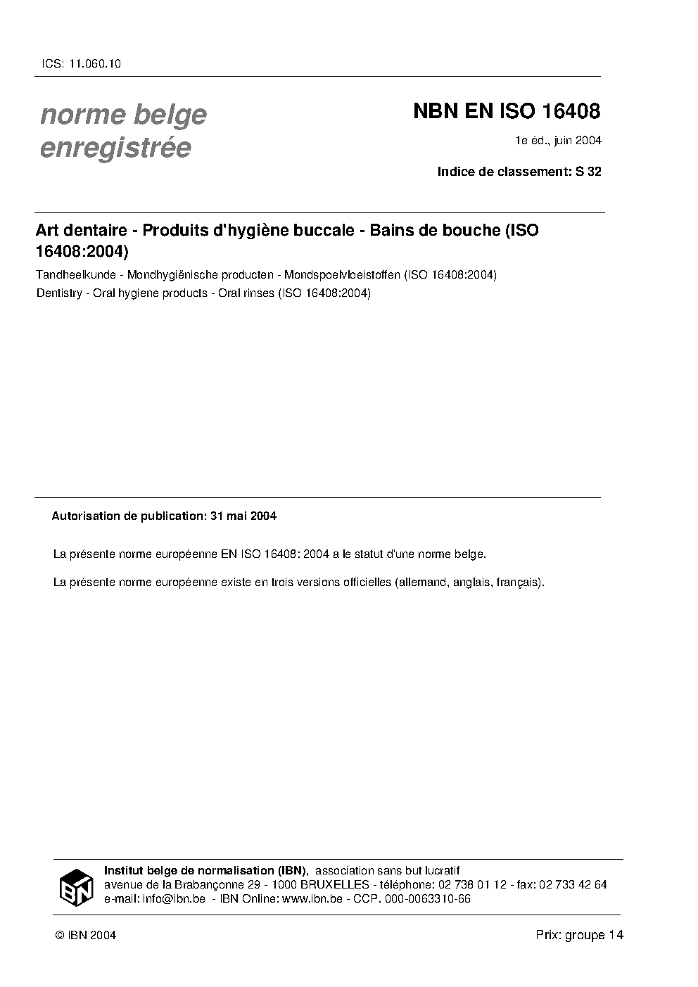 | Publisher | Bureau de Normalisation Belge (NBN) |