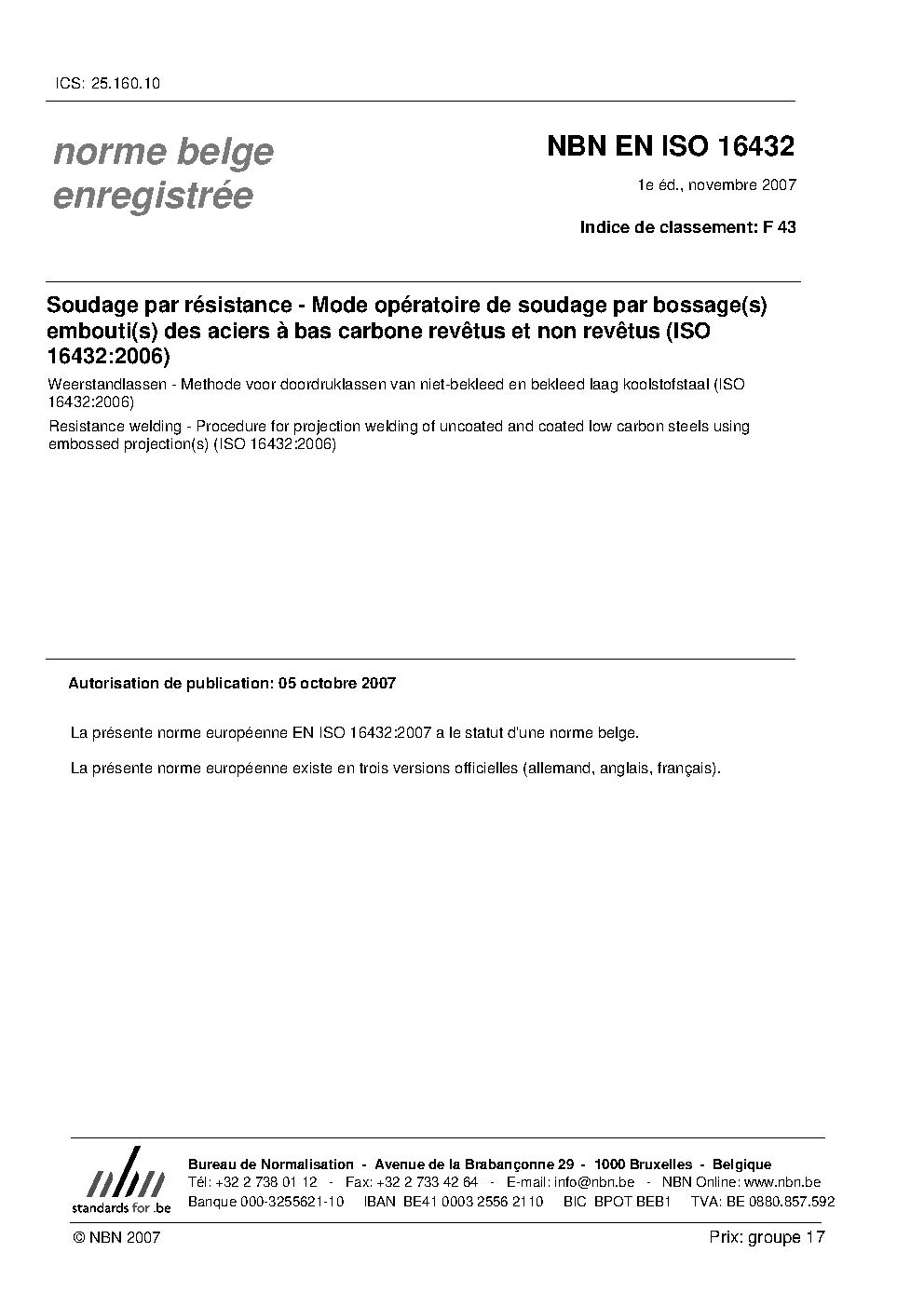 | Publisher | Bureau de Normalisation Belge (NBN) |