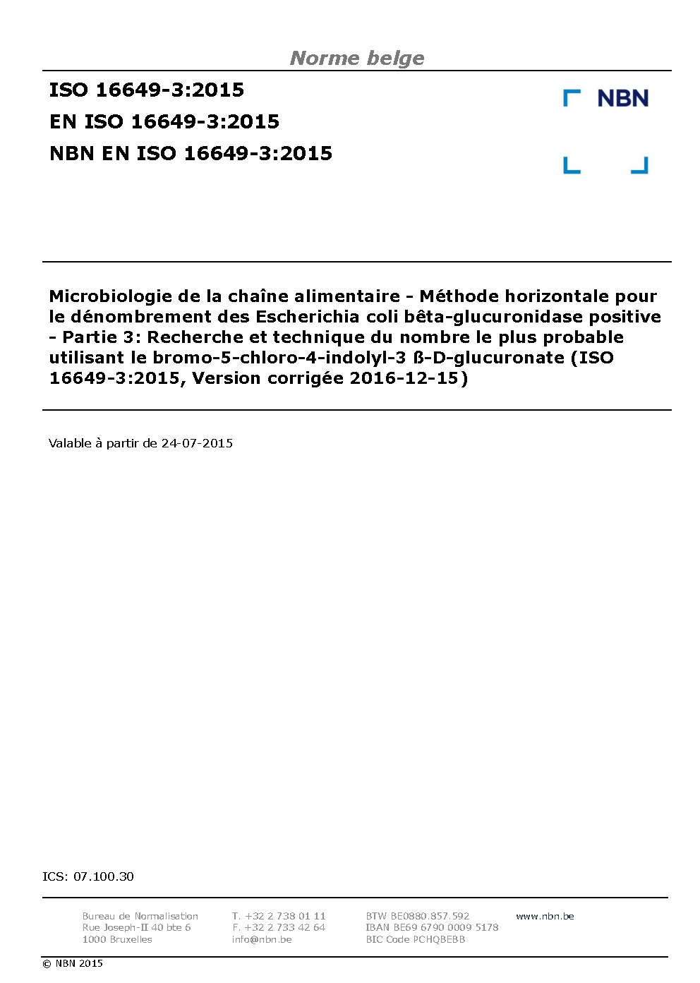 | Publisher | Bureau de Normalisation Belge (NBN) |