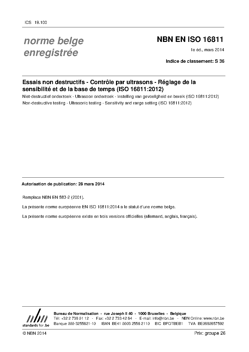 | Publisher | Bureau de Normalisation Belge (NBN) |