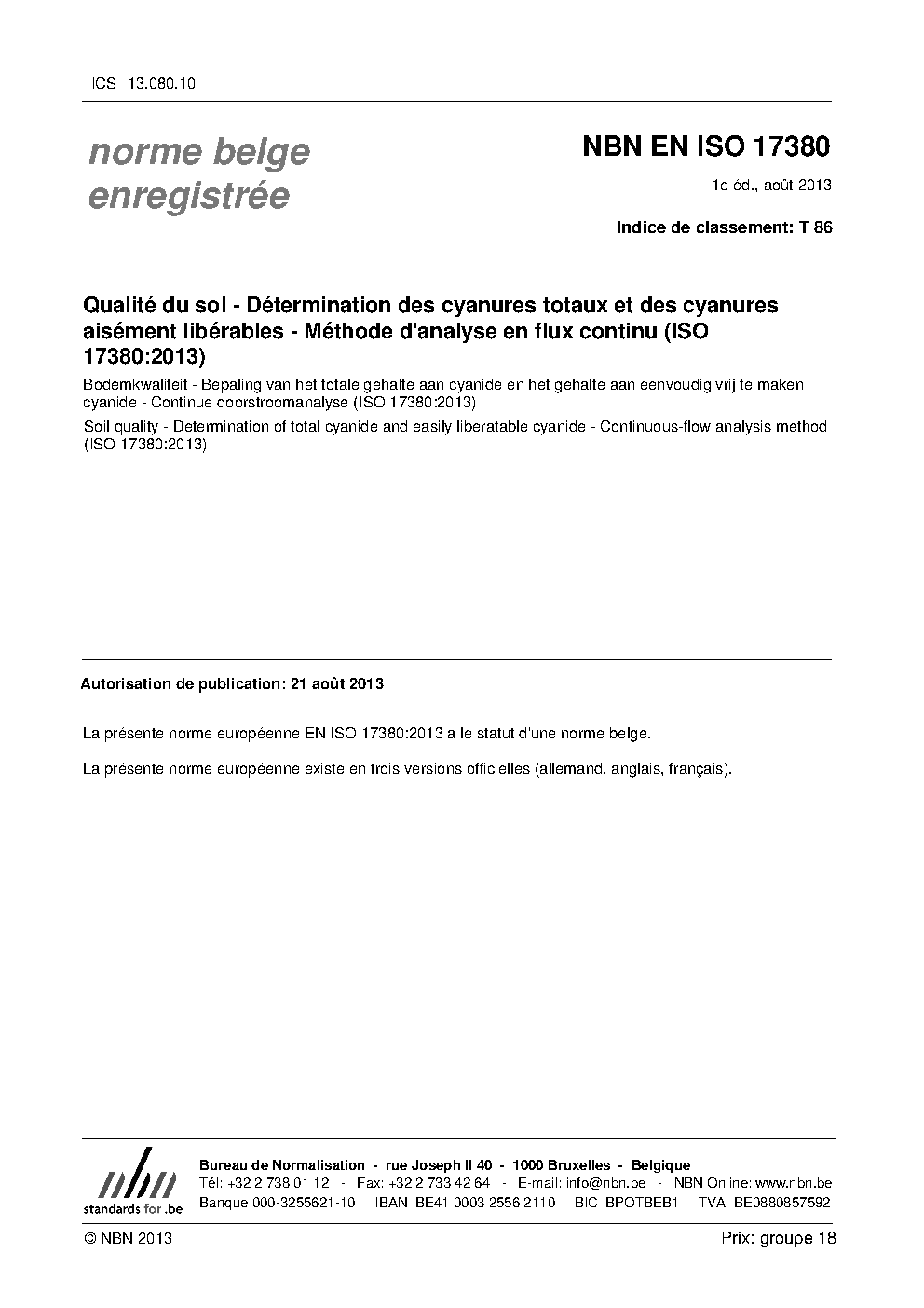 | Publisher | Bureau de Normalisation Belge (NBN) |
